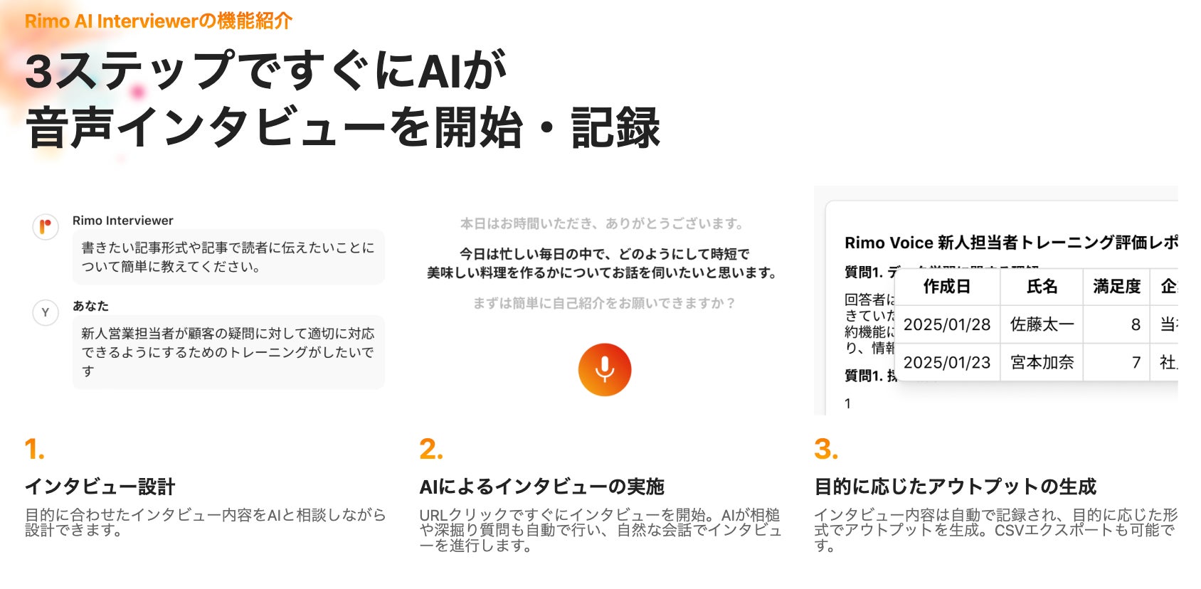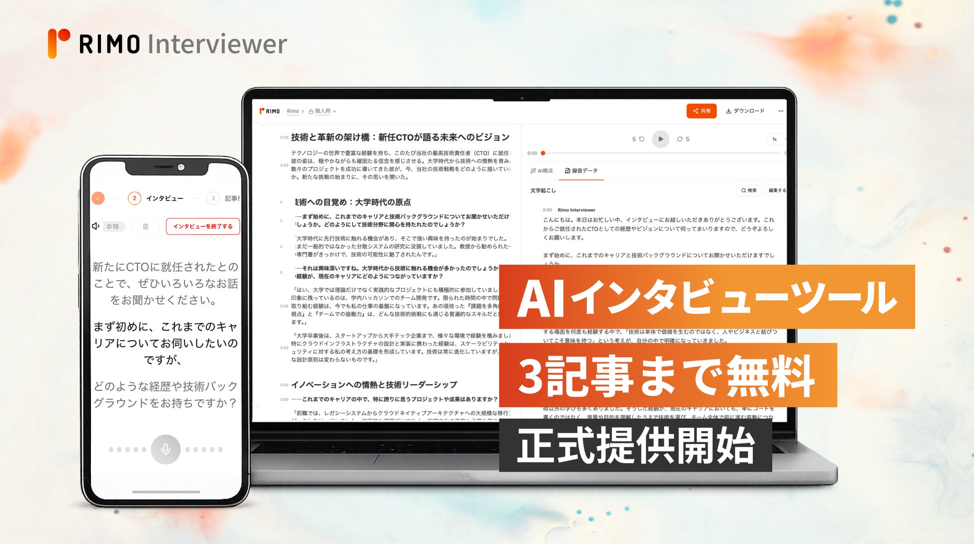 AIインタビューツール「Rimo Interviewer」、正式提供開始。毎月3記事まで無料。