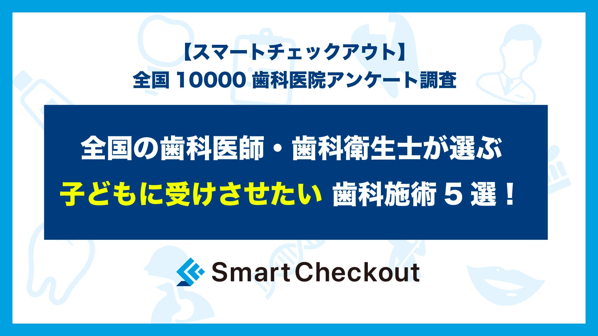 株式会社スマートチェックアウト(本社:東京都千代田区、代表取締役:玉井雄介、以下、スマートチェックアウト)は、「子どもに受けさせるべき歯科施術調査」を全国10,000の歯科医院に対してアンケート調査を行いました。