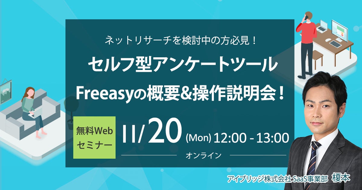 ネットリサーチの費用を見直したい方必見!【無料オンラインセミナー 11月20日(月)12時~】セルフ型アンケートツールFreeasyの概要&操作説明会
