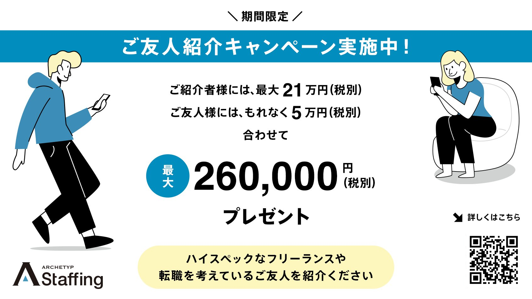 最大260,000円をプレゼント!ARCHETYP Staffing「ご友人紹介キャンペーン」開始のお知らせ
