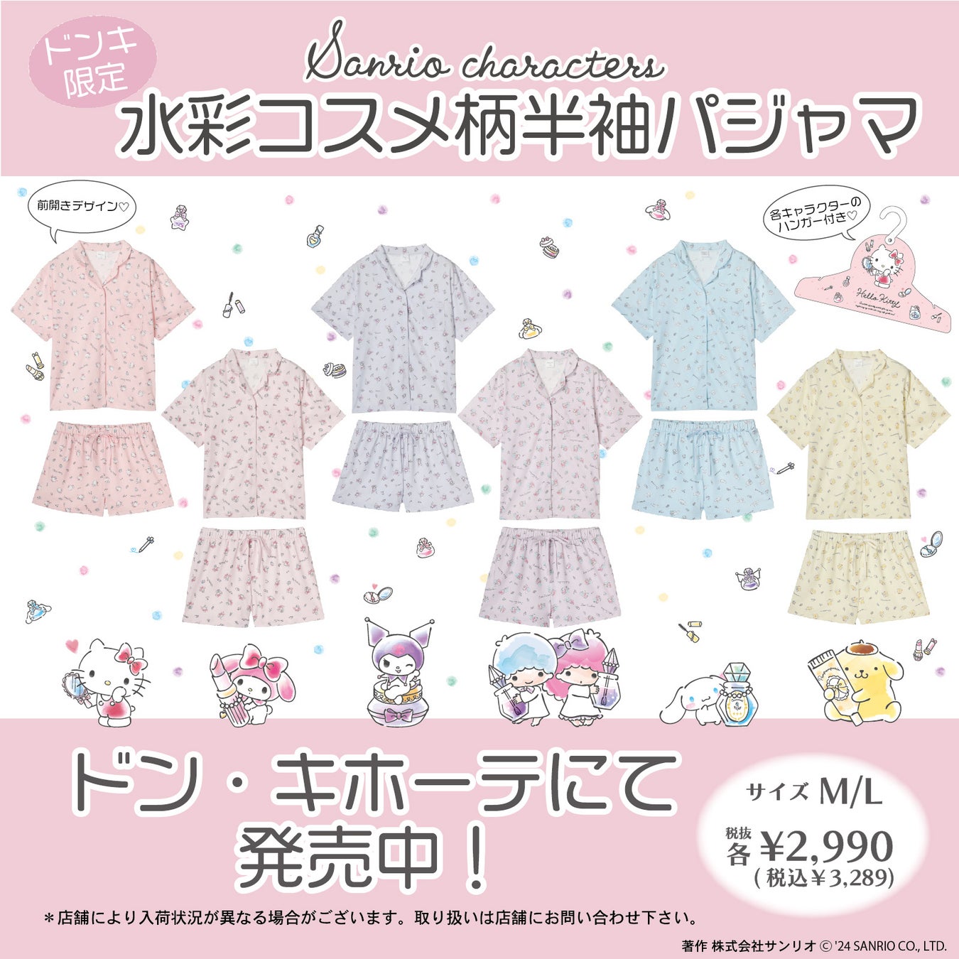 【ドン・キホーテ限定!】大人気のサンリオキャラクターズより、水彩コスメ柄の半袖パジャマと半袖上下セットが新登場☆