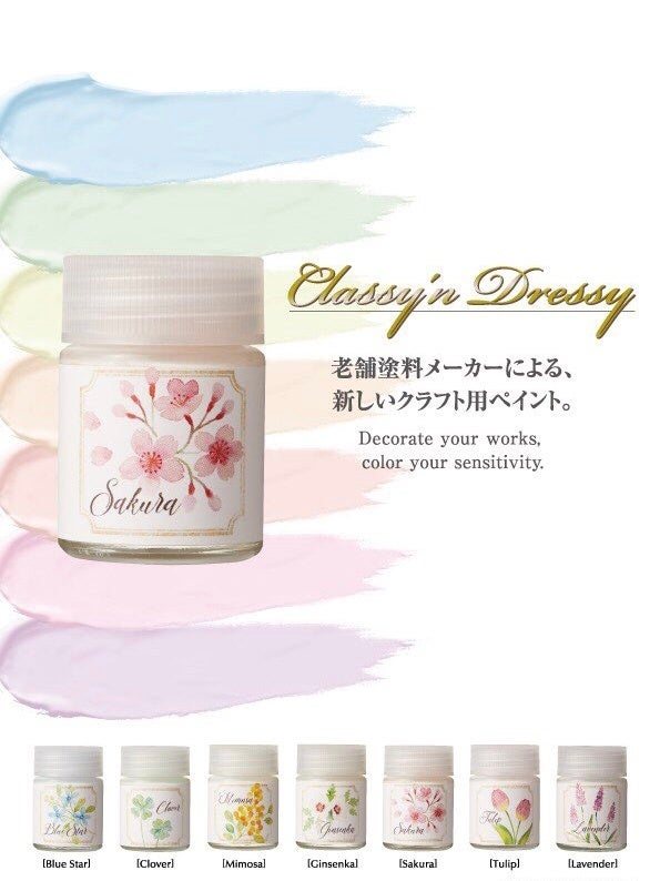 自分だけのオンリーワンの作品を作る時間は、自分自身の気持ちを豊かにしてくれる楽しいひと時です。そして出来上がった作品は感動を呼んでくれる。そんな、ハンドメイドの世界にいる皆様に、Classy(おしゃれな・上品)とDressy(しゃれた・エレガントな)を組み合わせたClassy 'n Dressyのブランドで、クラフト向け塗料・工具を提案いたします。