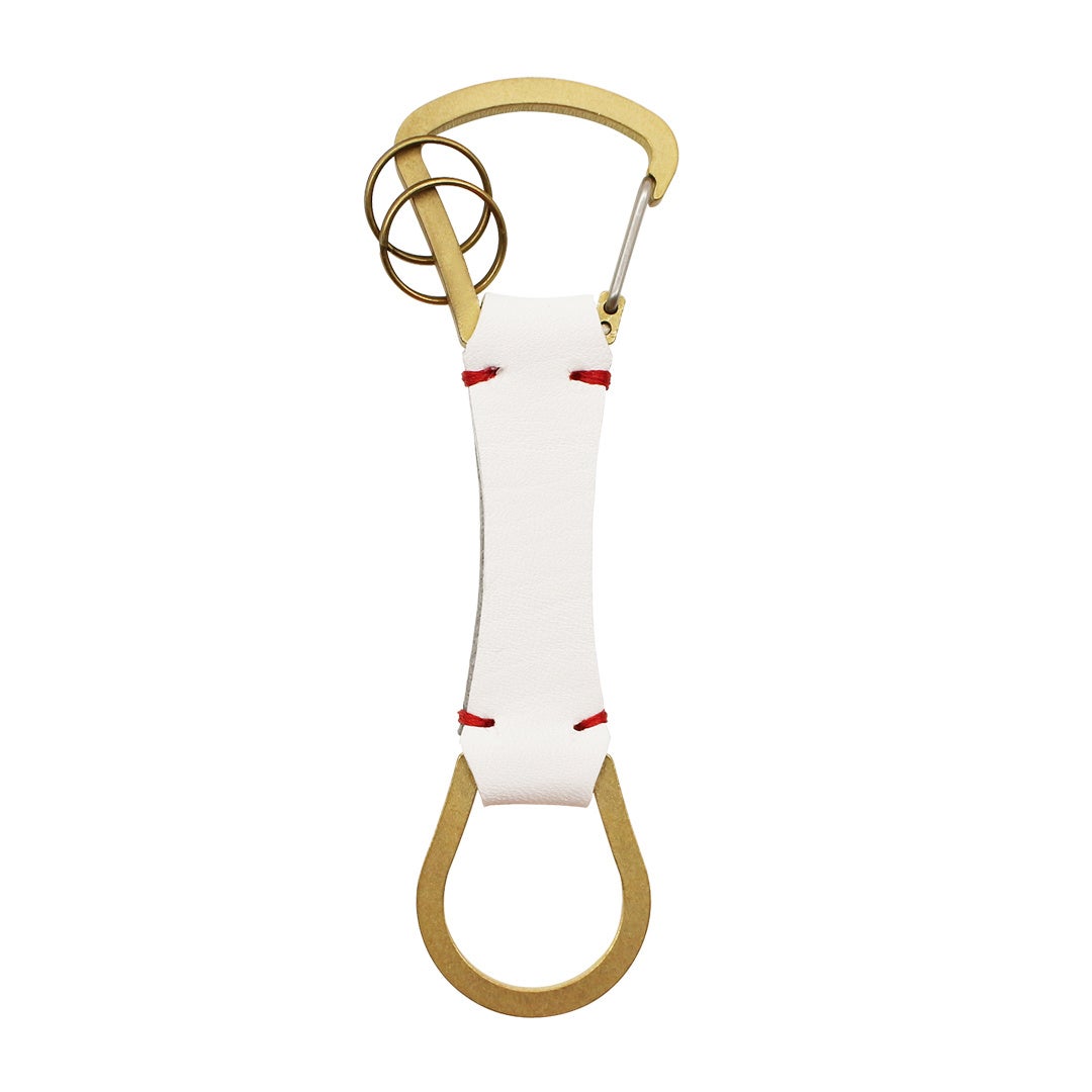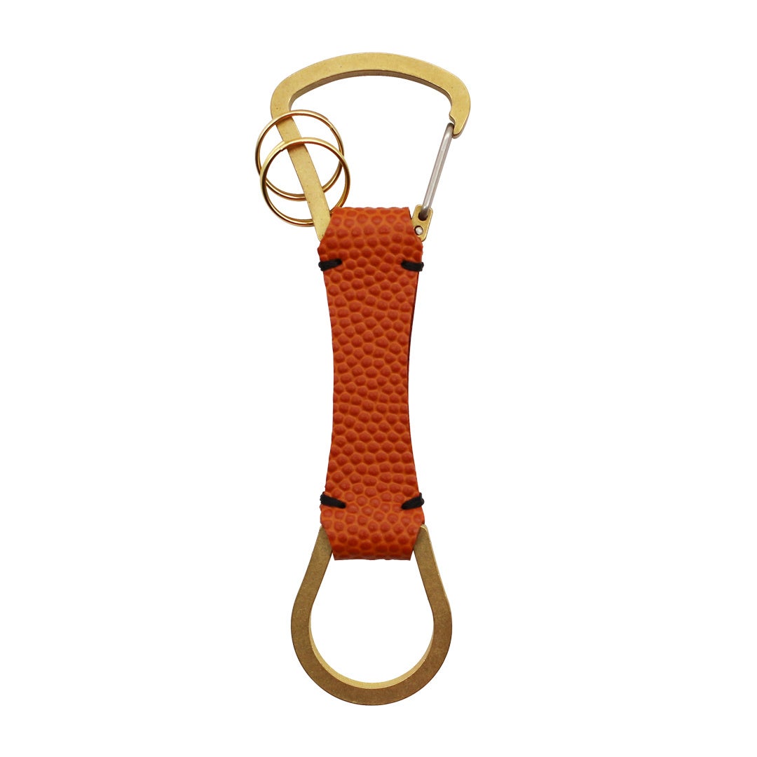 moca完全オリジナルのこだわりのパーツにナダヤスポーツのボールレザーを使用したキーホルダー。バスケットボールレザーのオレンジ、革を作るタンナーに別注しているブラック、野球の硬式ボールレザーの3種よりお選びいただけます。
