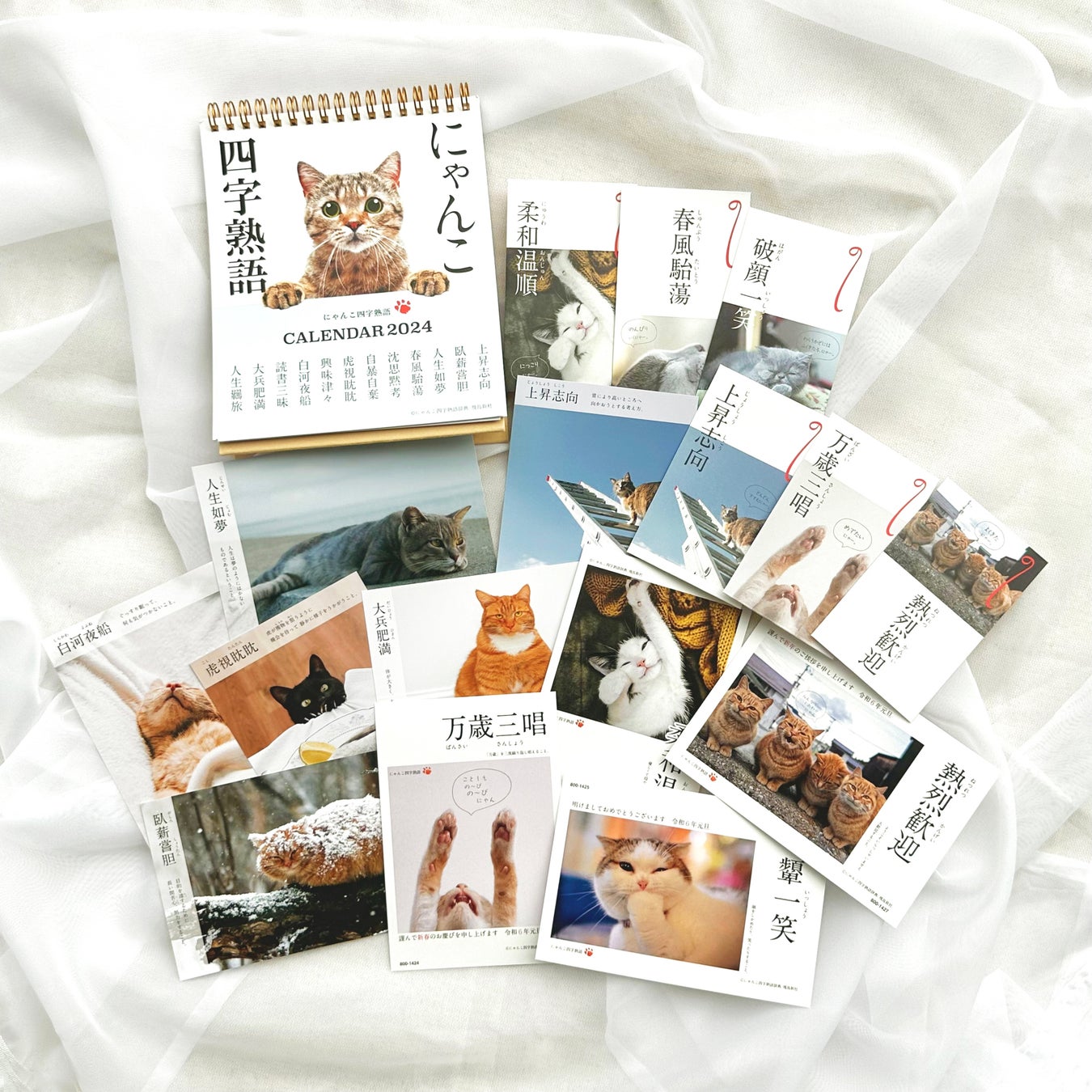 ★郵便局での取り扱いは「にゃんこ四字熟語月めくりカレンダー」および「にゃんこ四字熟語ポストカード」のみとなります。その他販売店につきましてはフタバ株式会社までお問合せ下さい。