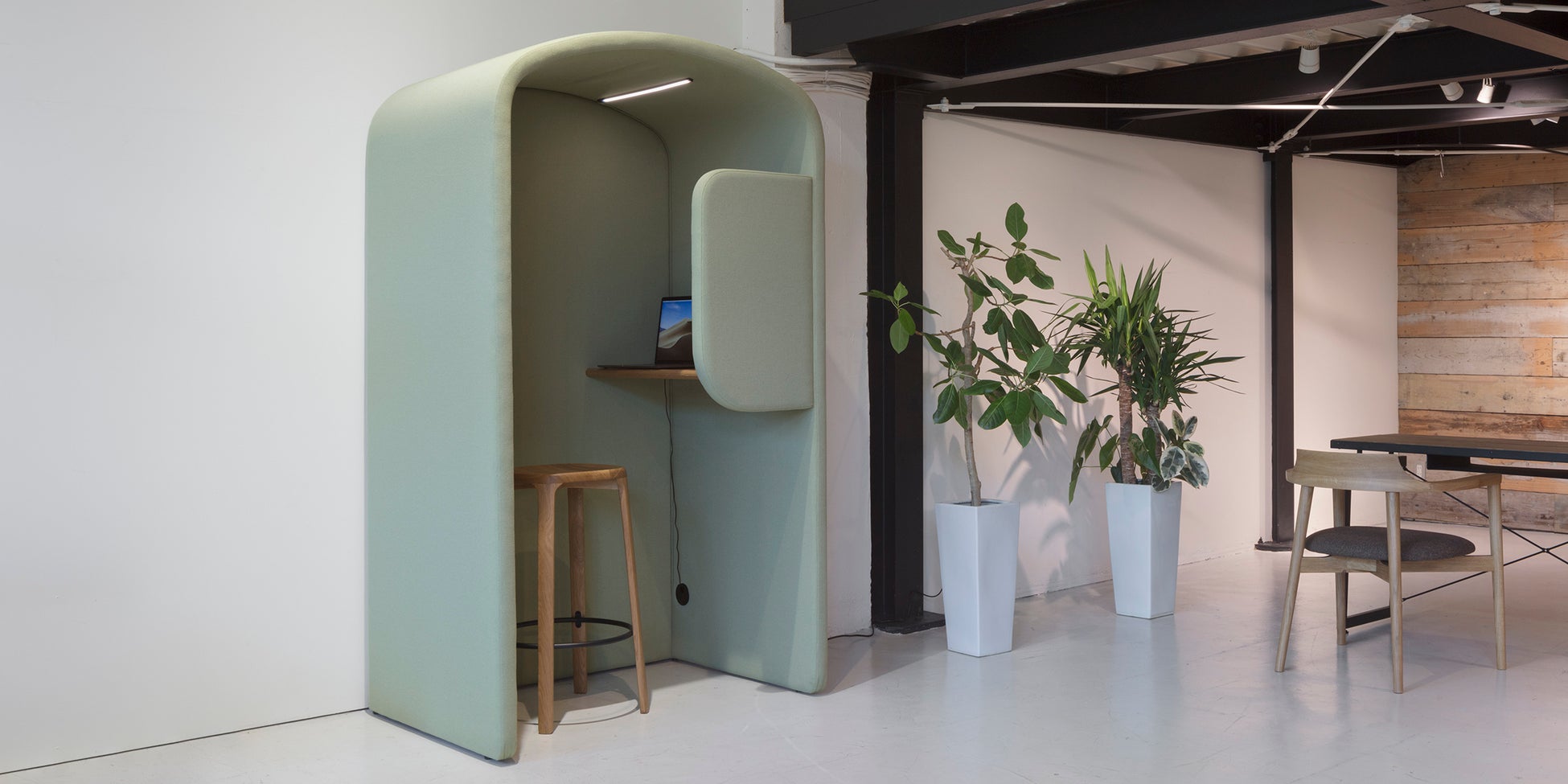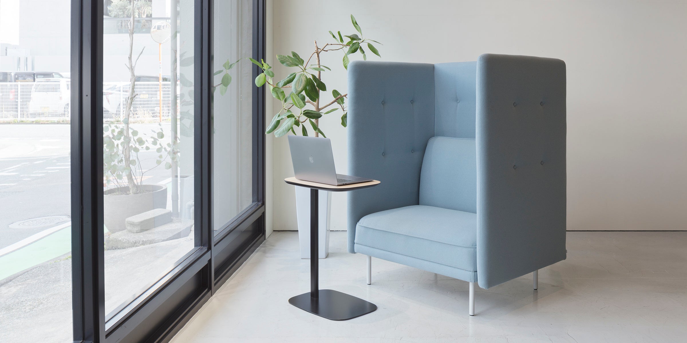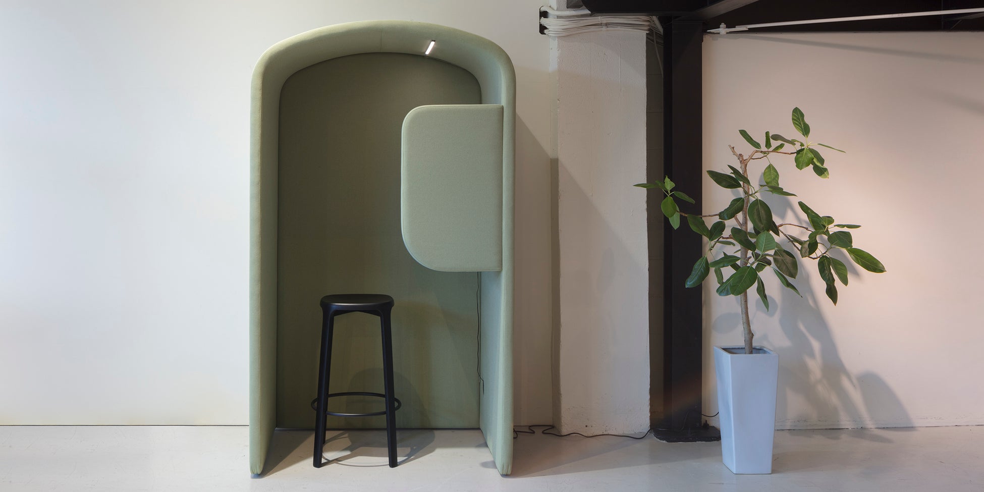 ハイブリッドワークの浸透により、特にニーズが高まっているパーソナルブース。完全密閉のブースも機能面では優れていますが、空間のインテリアとの調和という視点では少し工夫が必要です。アダルはインテリアとの調和、家具の持つ情緒的な価値という視点で、セミクローズドでユニークな形状のパーソナルブースをご提案します。