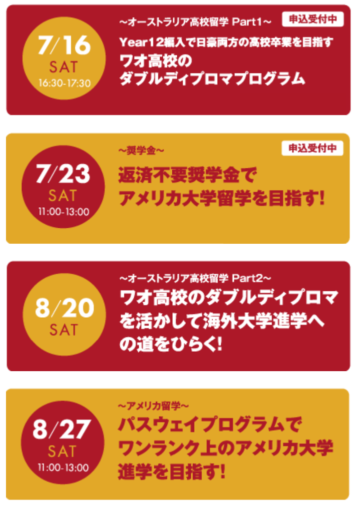 ワオ留学フェス 申込受付中の留学セミナー