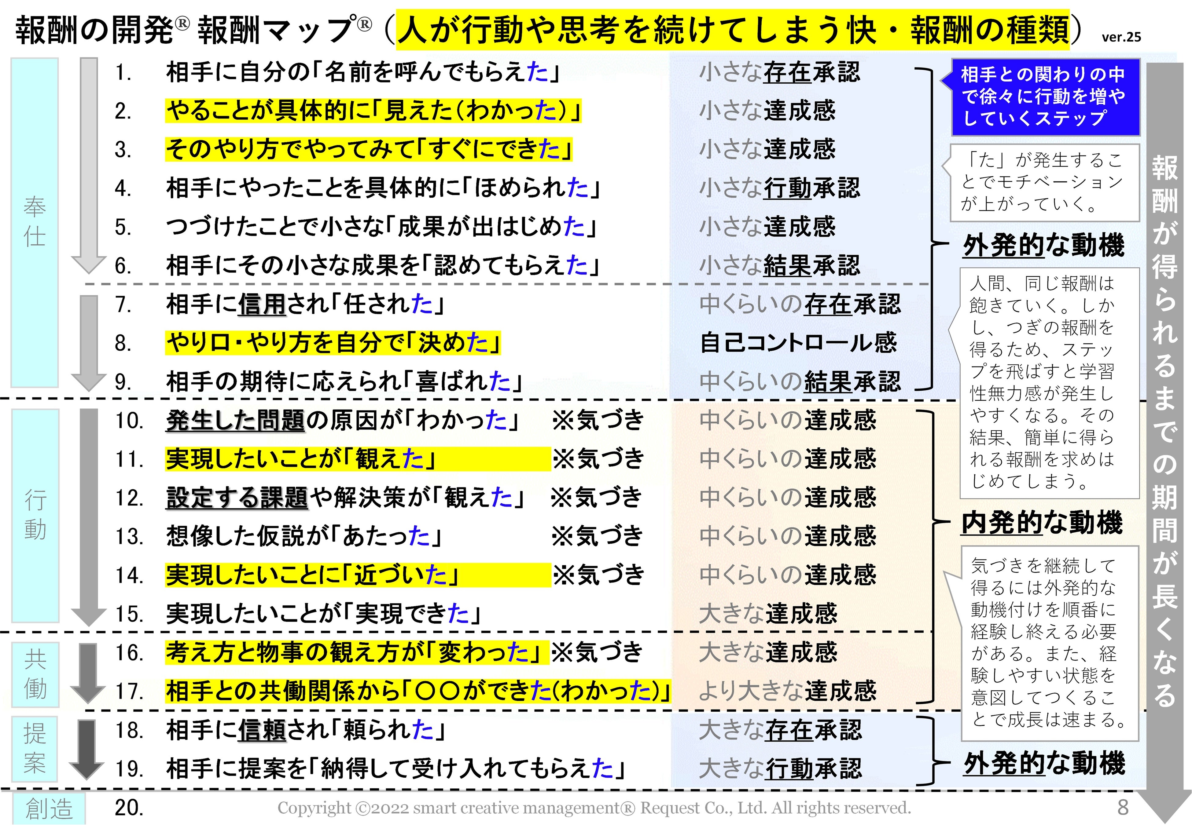 さらに、できるようになったことを活かし、相手の問題を解決していくことができれば、相手から喜んでもらえる。承認と言う快・報酬が得られる。試行錯誤する回数とスピードが上がっていく。結果として、失敗の程度が浅くなっていく。こうなれば、失敗は失敗としてとらえなくなる。