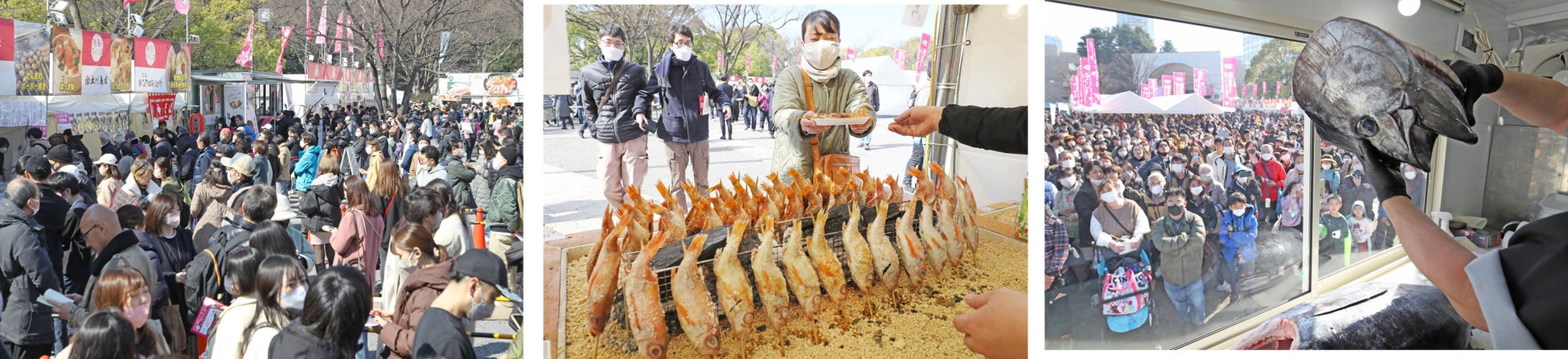 屋外フードフェスの〝聖地〟とも言われている代々木公園。渋谷、原宿に近く、週末には若い世代からファミリー層を中心に、多くの人が訪れ、イベントもにぎわいます。魚ジャパンフェスは2019年2月に代々木公園で第1回を開催し、新型コロナによる中止を経て、2023年2月に4年ぶりに復活。代々木公園でも屈指の集客を誇り、毎回多くのテレビでも紹介される人気のフードフェスとして注目を集めています。