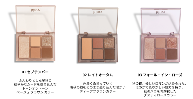溶け込むソフトなカラーでhinceならではの“秋色”をアイシャドウパレットとリップスティックで表現しました。