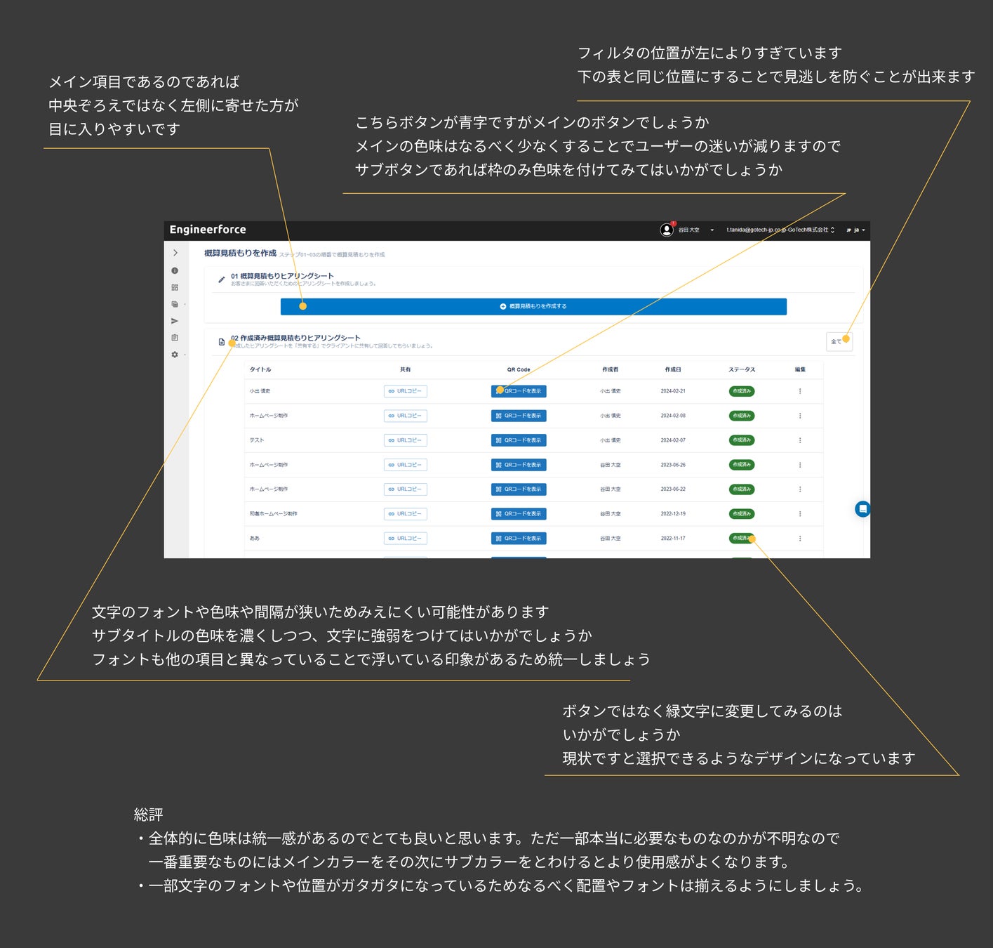 【特徴2】実際の画像内に改善ポイントが記載されるためわかりやすい