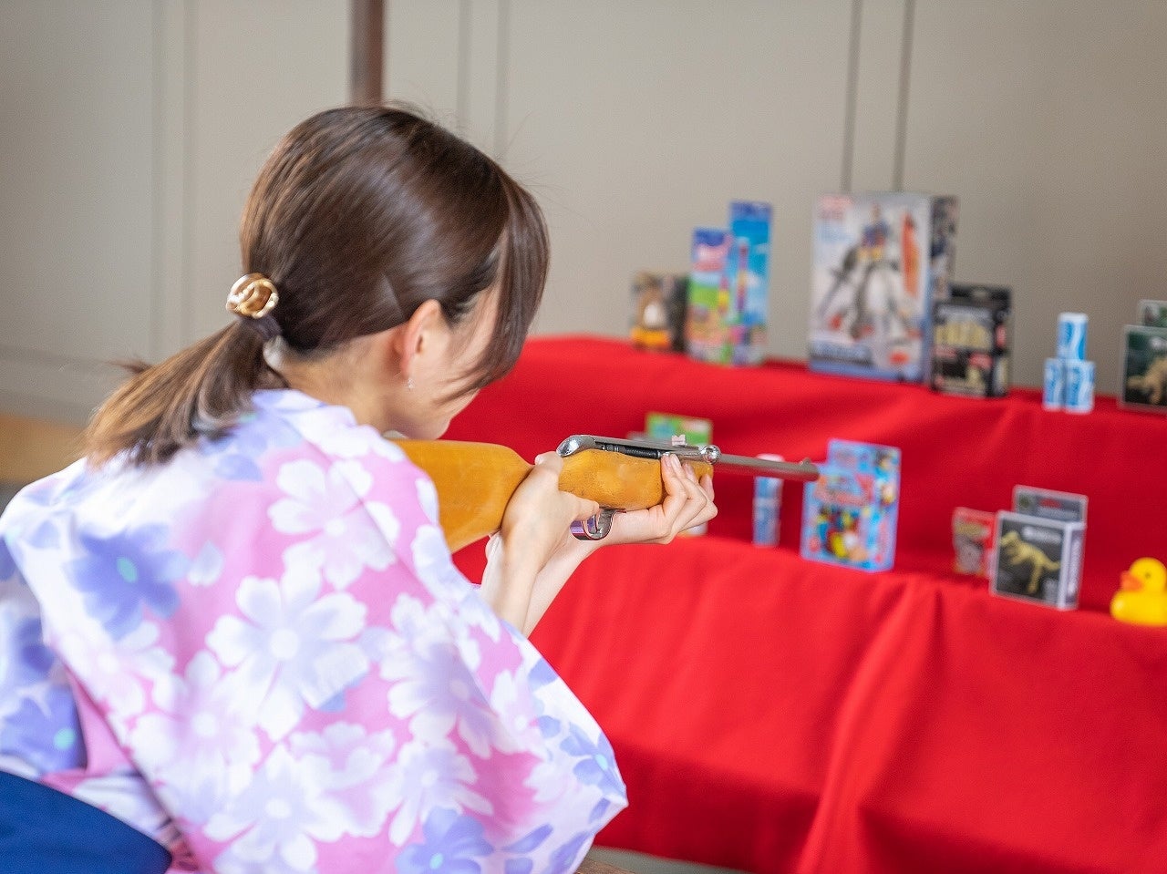 射的はもちろん、輪投げやおはじきキャッチなど、縁日を代表するゲームをご用意しております。