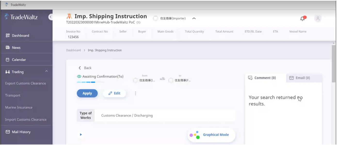 協業第一弾として、住友商事の銅鉱石輸入取引を想定し、3月23日にデジタル化連携実証試験を実施し、60%の業務効率化の可能性が示唆されました。本結果は4月7日 国際商業会議所 英国委員会が主催するデジタル貿易カンファレンスでも報告されました。