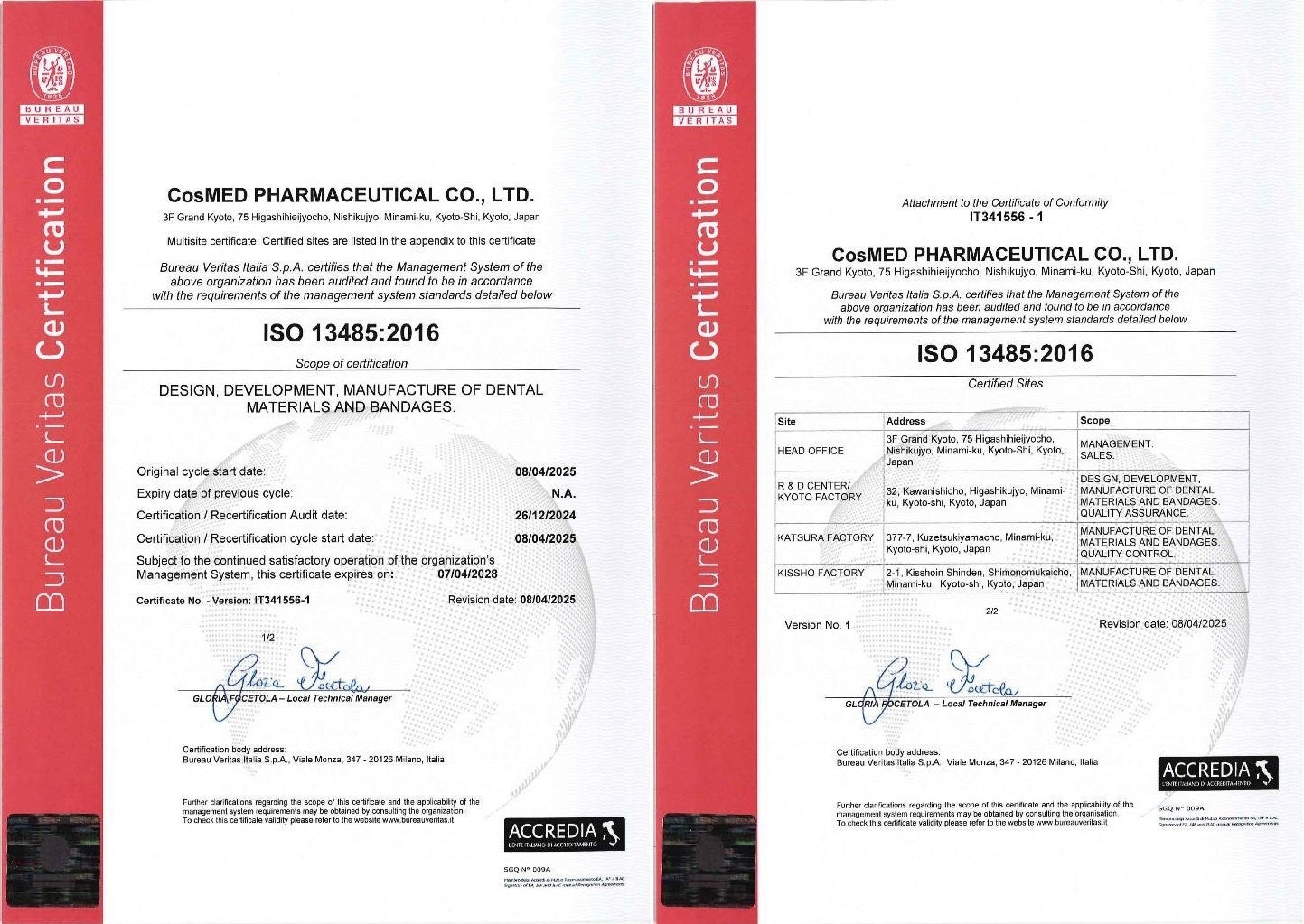 コスメディ製薬株式会社(本社:京都市、代表取締役社長:権 英淑)は、医療機器の品質マネジメントシステムであるISO13485認証を取得しましたのでお知らせします。