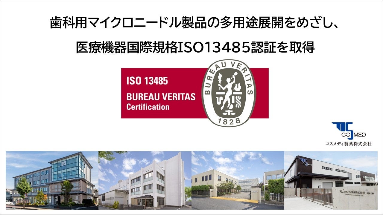 コスメディ製薬、医療機器ISO13485認証を取得、歯科用マイクロニードル製品の多用途展開へ
