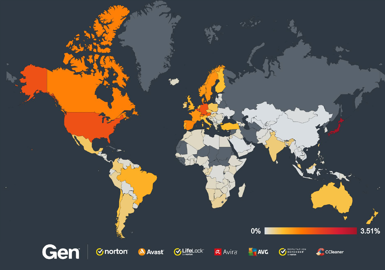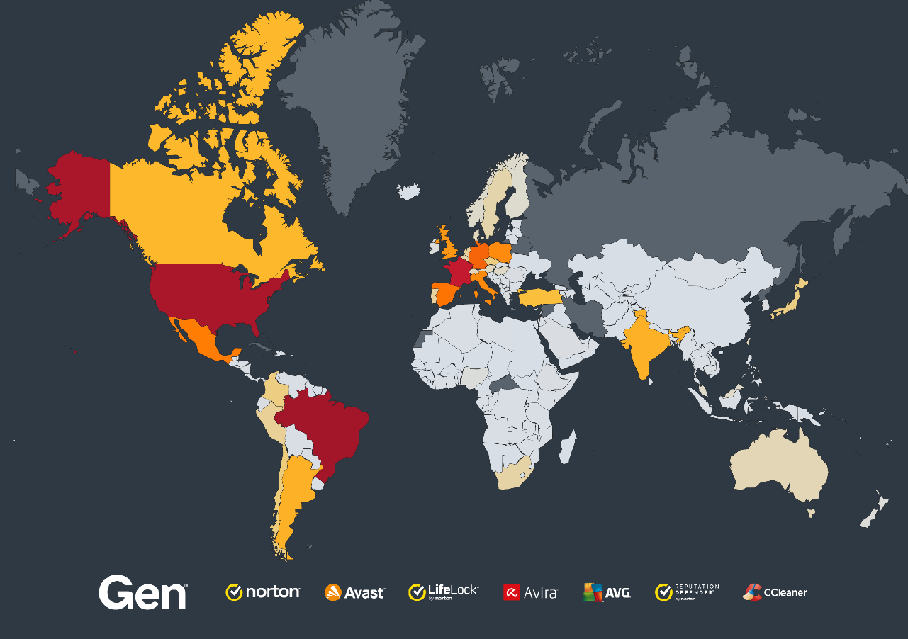 今期だけでも、Genでは100万人以上のユーザーをこれらのサイバー攻撃から保護しました。サイバー攻撃は世界中で発生していますが、特に北米、南米、ヨーロッパで活発に行われており、インドや日本でも重大な事件が報告されています。