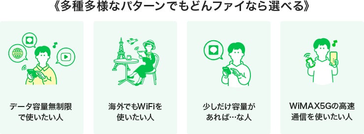どんなときもWiFiは下記様々な方の理想に合ったプランを提供いたします。
