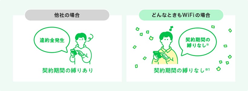 どんなときもWiFiは、契約期間の縛りがないので、自由に安心してご契約いただけます。