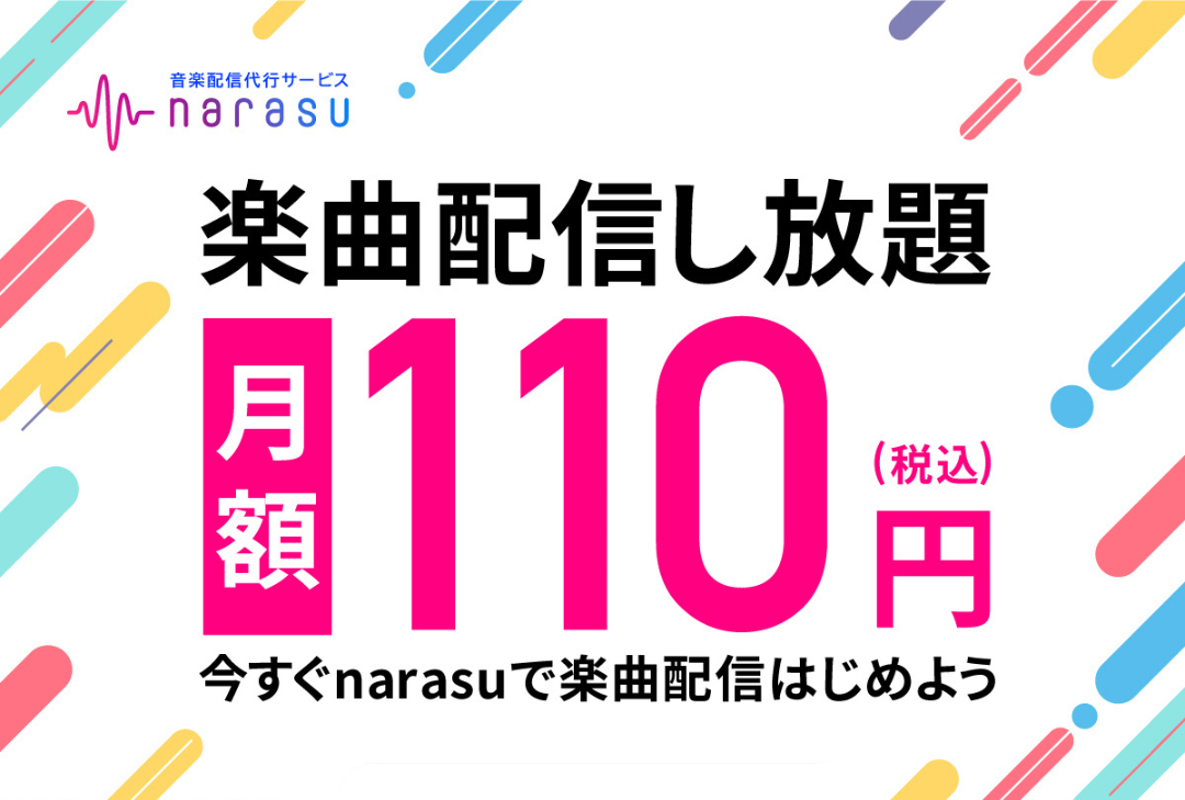 音楽配信代行サービス「narasu」、月額110円で無制限で楽曲配信し放題に!<価格改定のお知らせ>