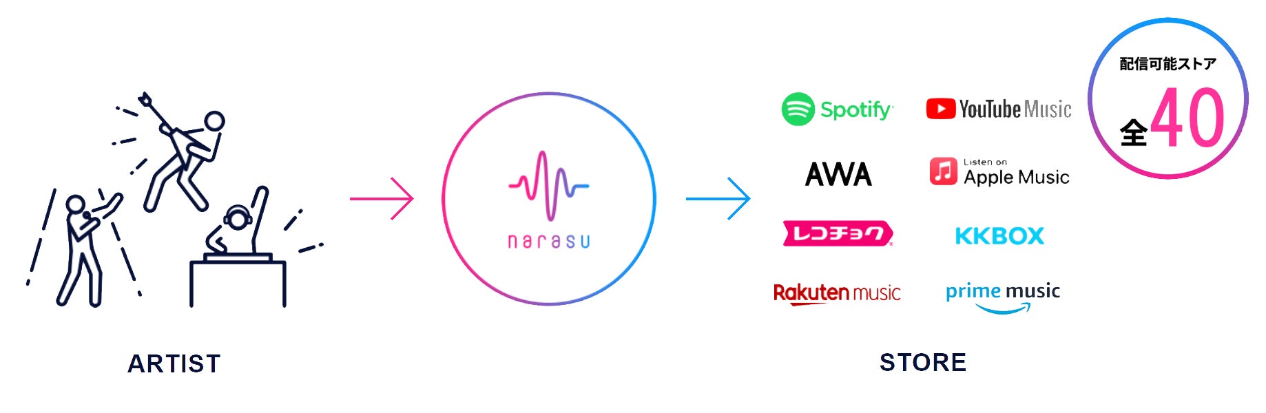 2020年12月8日、国内初のサブスク型音楽配信代行サービス「narasu(ナラス)」のサービスを開始。