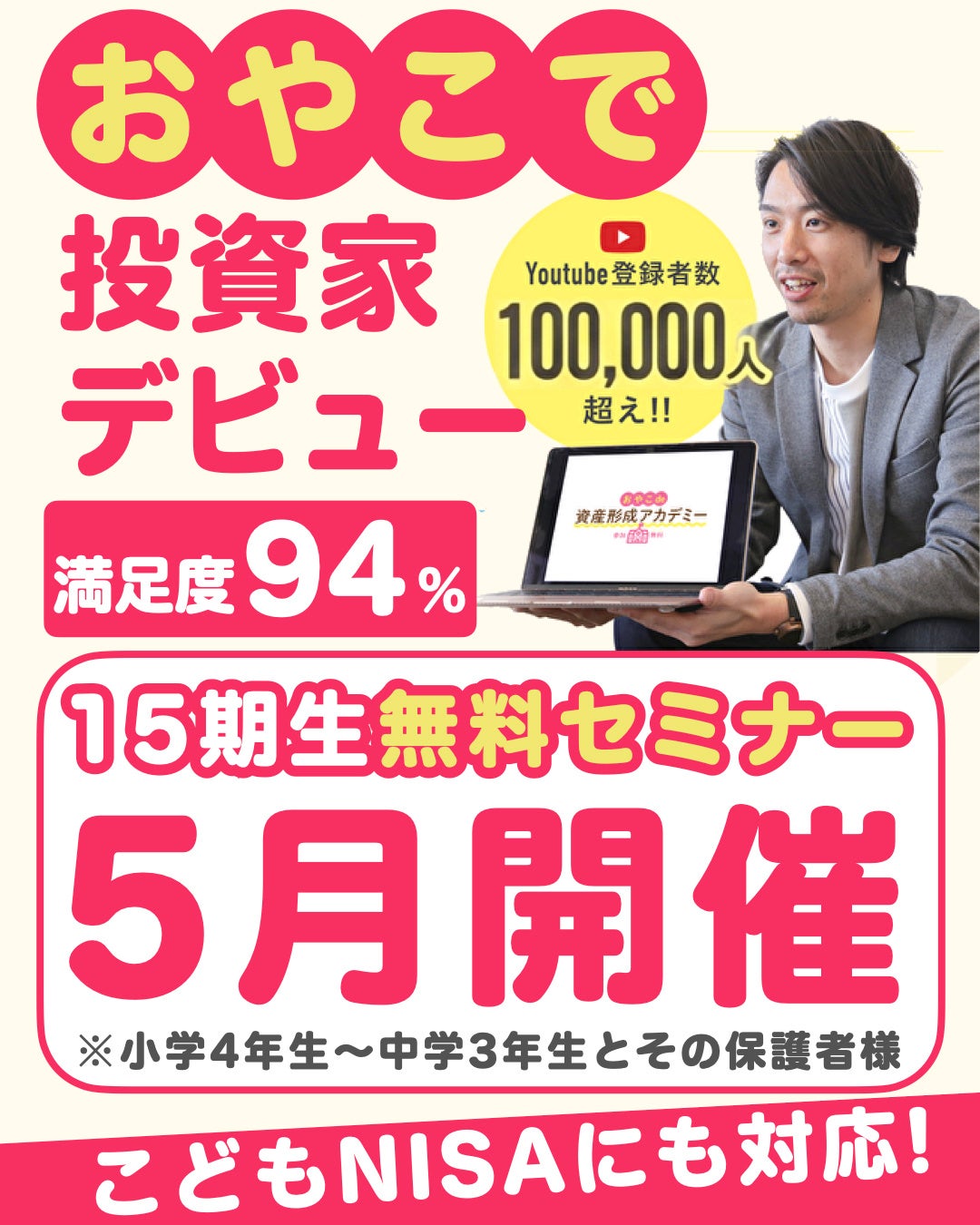 そんなオンラインイベント「おやこde資産形成アカデミー」が、下記の日程で開催されます。