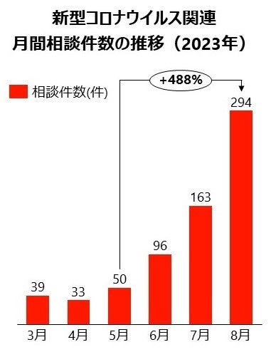 2023年5月から8月にかけて「みんなの家庭の医学」の健康相談に寄せられる新型コロナウイルスに関連する相談件数が増加。