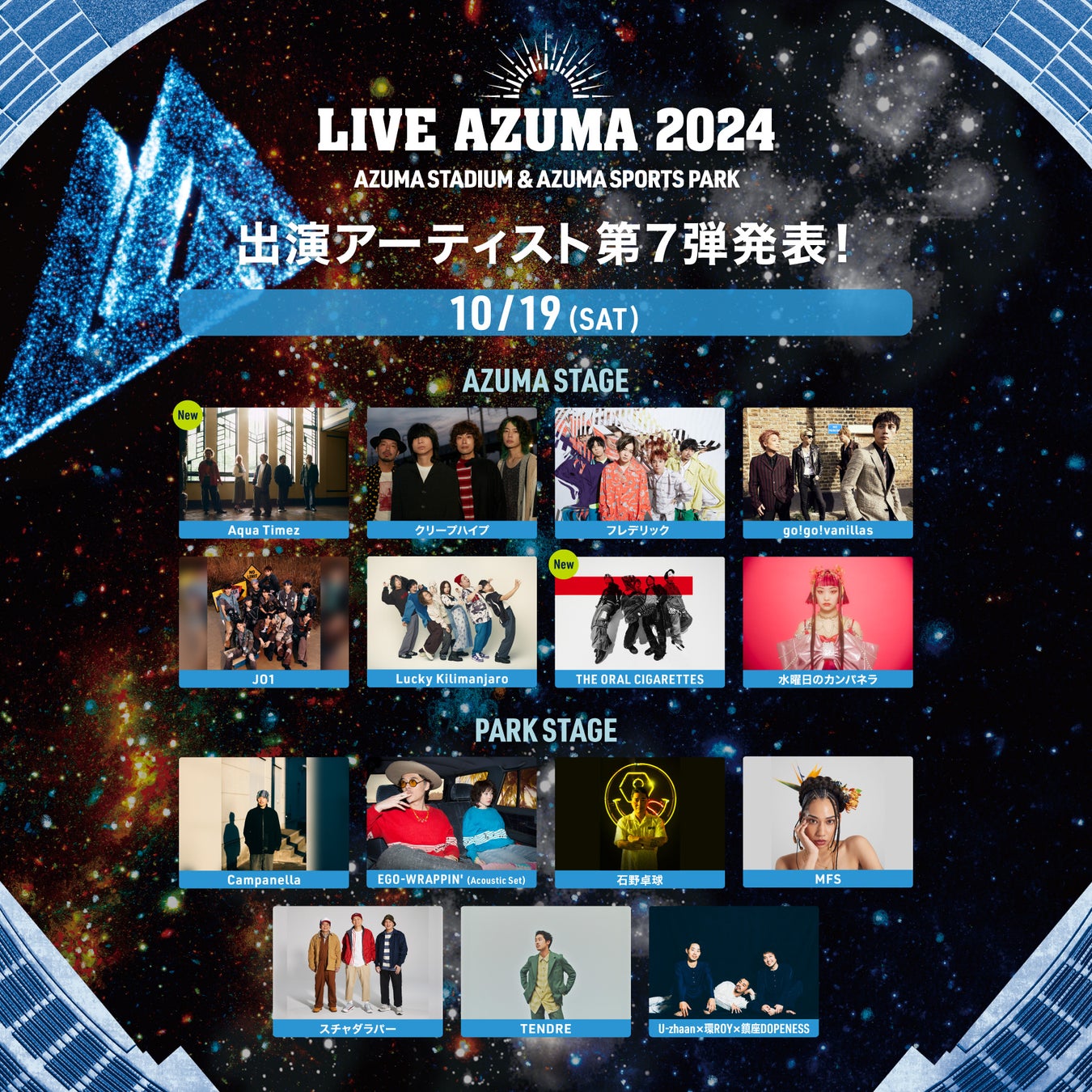 LIVE AZUMA 2024 第7弾追加アーティスト!Aqua TimezとTHE ORAL CIGARETTESの出演が決定!