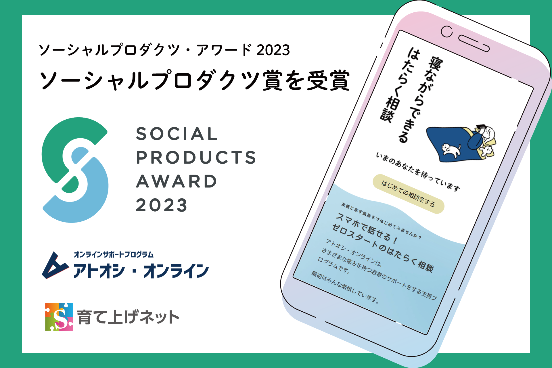 「若者と社会をつなぐ」をミッションに⼦ども・若者を⽀える認定NPO法⼈育て上げネット(東京都⽴川市、理事⻑:⼯藤啓)は、若者向けオンライン就労⽀援プログラム「アトオシ・オンライン」を展開しています。この度同プログラムは、⼀般社団法⼈ソーシャルプロダクツ普及推進協会が主催する「ソーシャルプロダクツ・アワード 2023」において、ソーシャルプロダクツ賞を受賞いたしました。