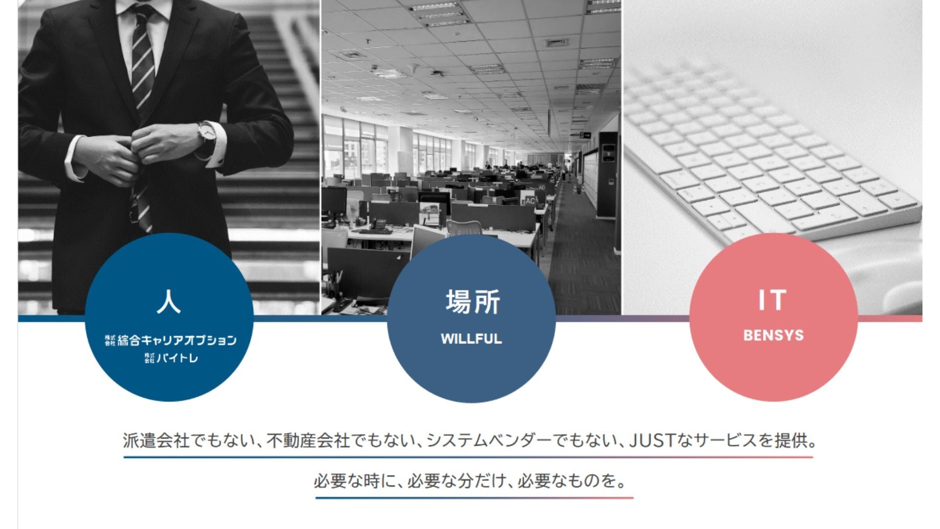 人材派遣会社でもない、不動産会社でもない、システムベンダーでもない、JUSTなサービスを提供。必要な時に、必要な分だけ、必要なものを包括的なソリューションとして提供いたします。