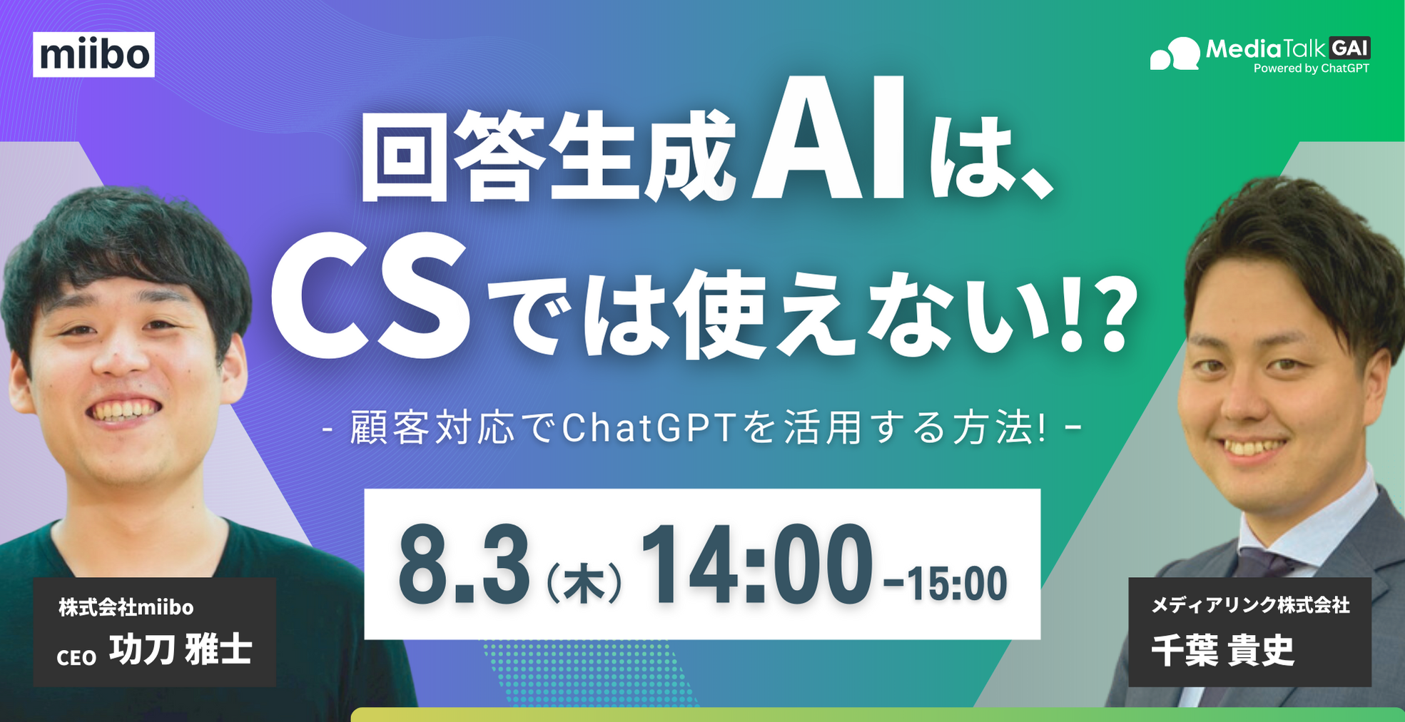 【8月3日(木)14時~】回答生成AIはCSでは使えない!?顧客対応でChatGPTを活用する方法!ウェビナー開催のお知らせ