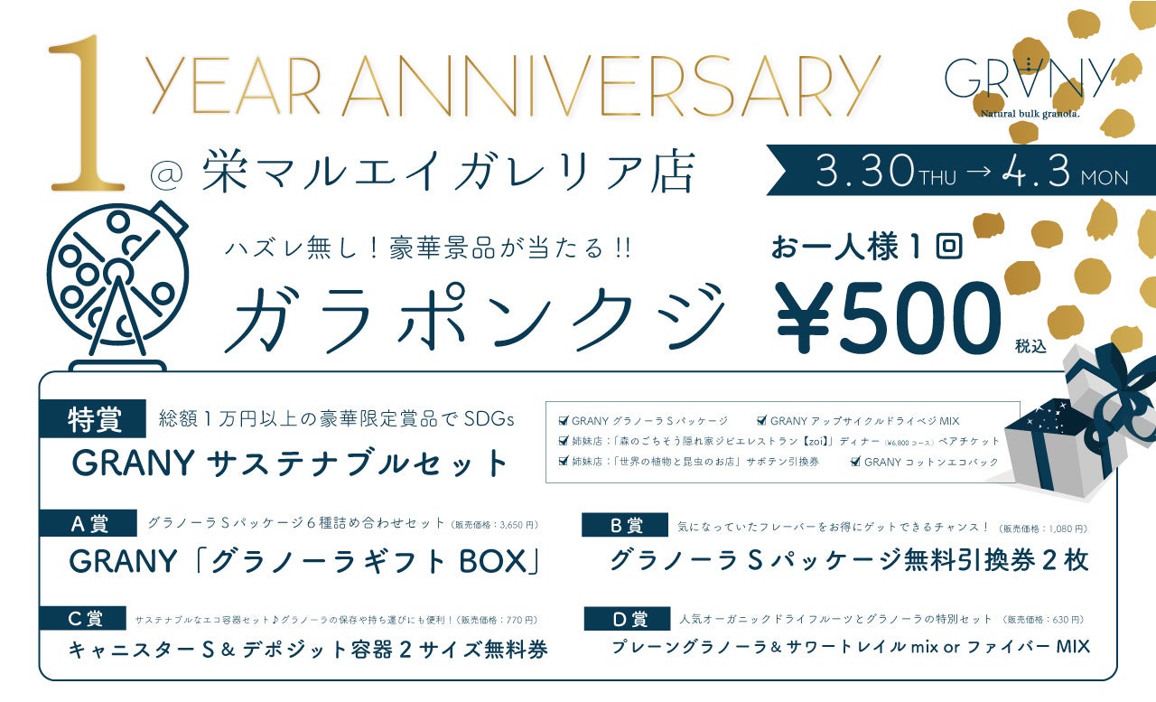 【GRANY】栄マルエイガレリア店オープン1周年!感謝を込めて記念イベント開催