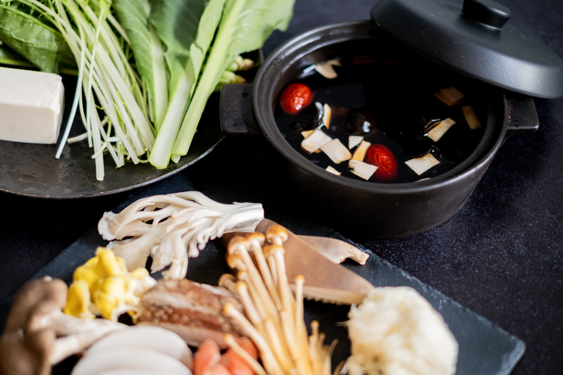 厳選したきのこをじっくり煮出した秘伝のスープは、きのこの旨味が溶け出し栄養満点。お肉を食べ過ぎた日のあとなど、体にやさしい食事を取りたいときにもおすすめです。季節の野菜、豆腐も一緒にお楽しみください。