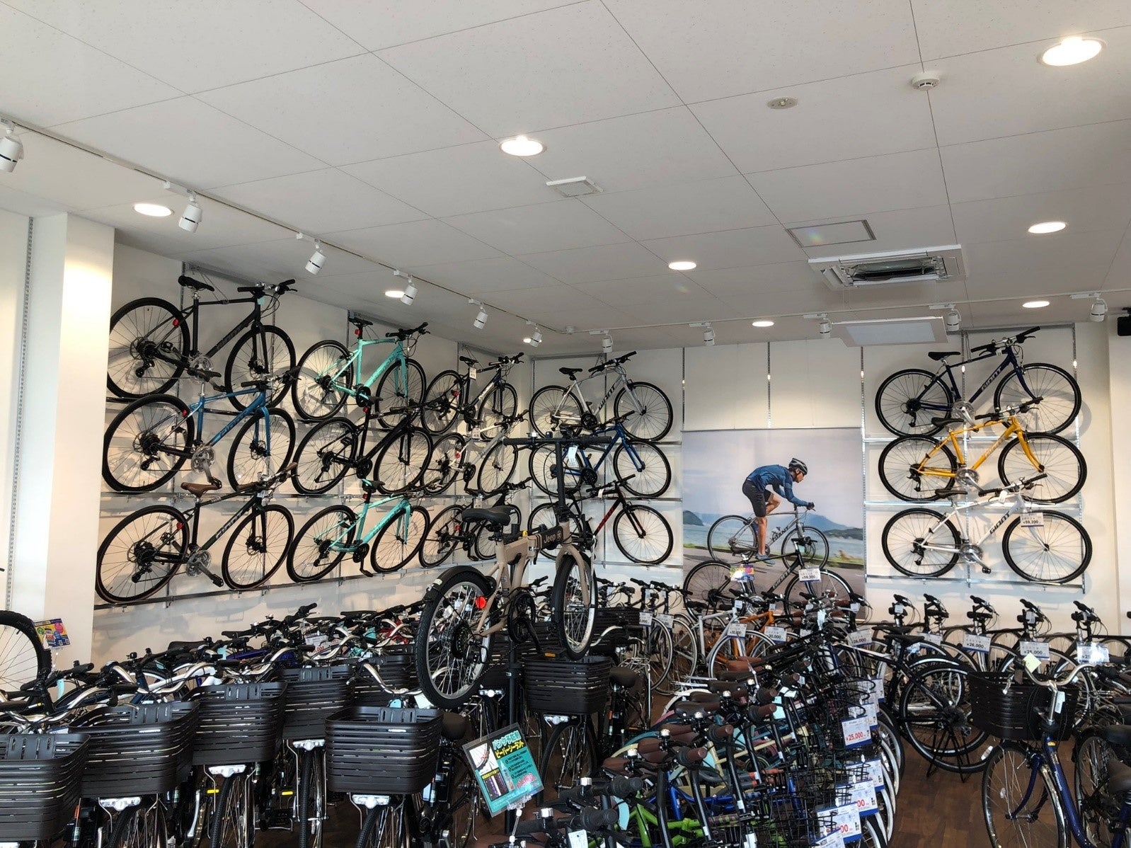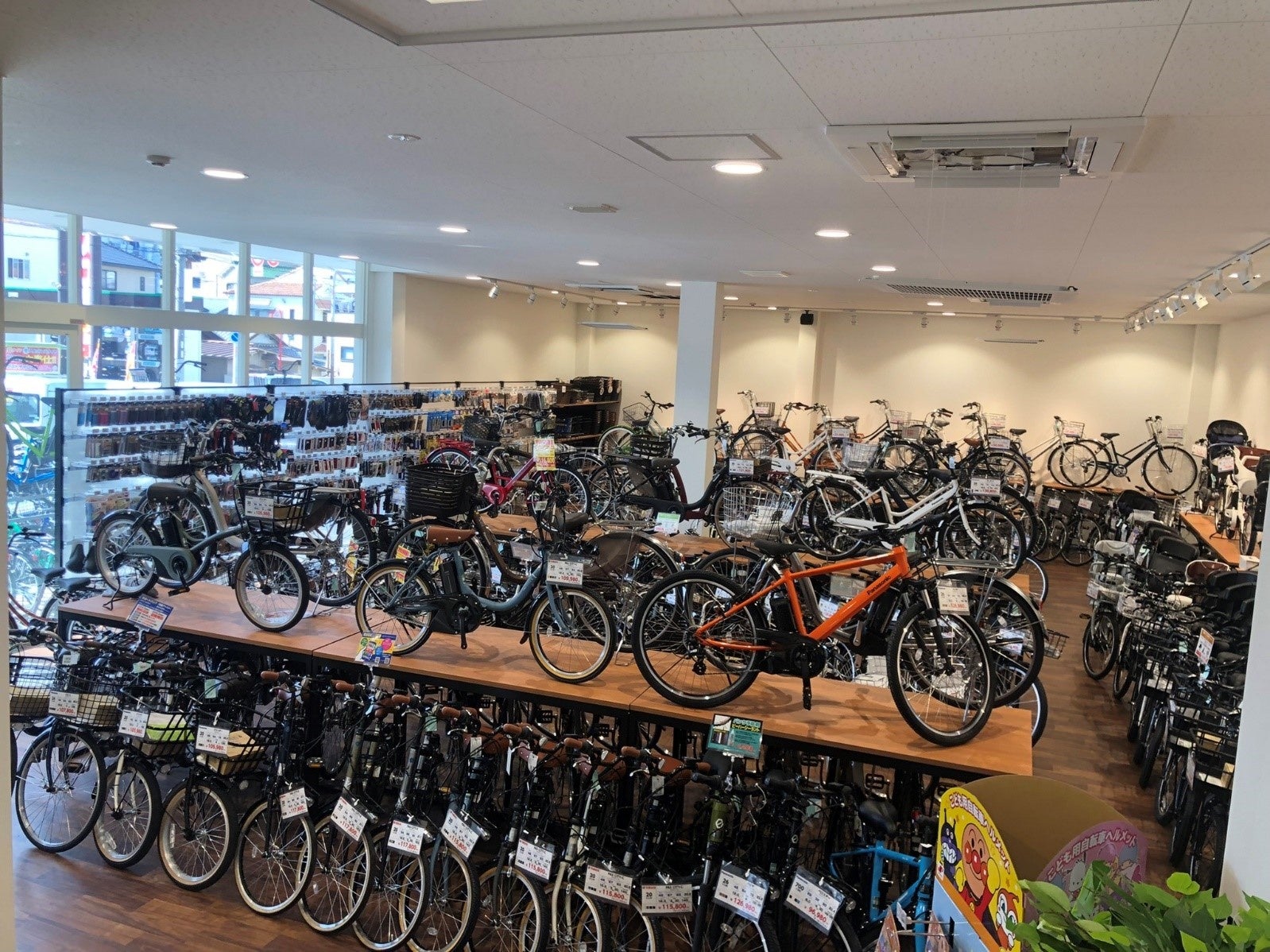 店舗は2階建てとなっており、1階には一般自転車、電動アシスト自転車をそれぞれ約100台ずつ揃えております。