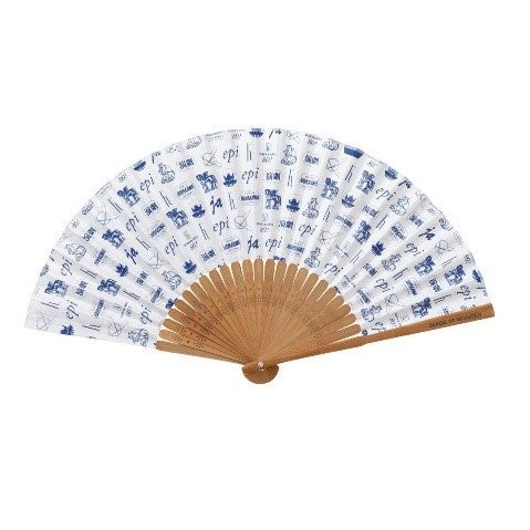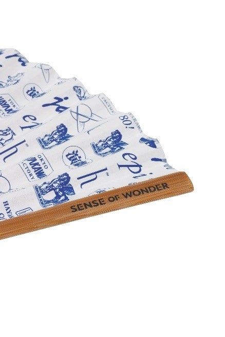 日本の伝統的な紙である和紙を用いた扇面に、日本の伝統的な色である藍で創立80周年記念ロゴと早川書房の各レーベルロゴをちりばめ、親骨にはシックな黒で「SENSE OF WONDER」とプリント。