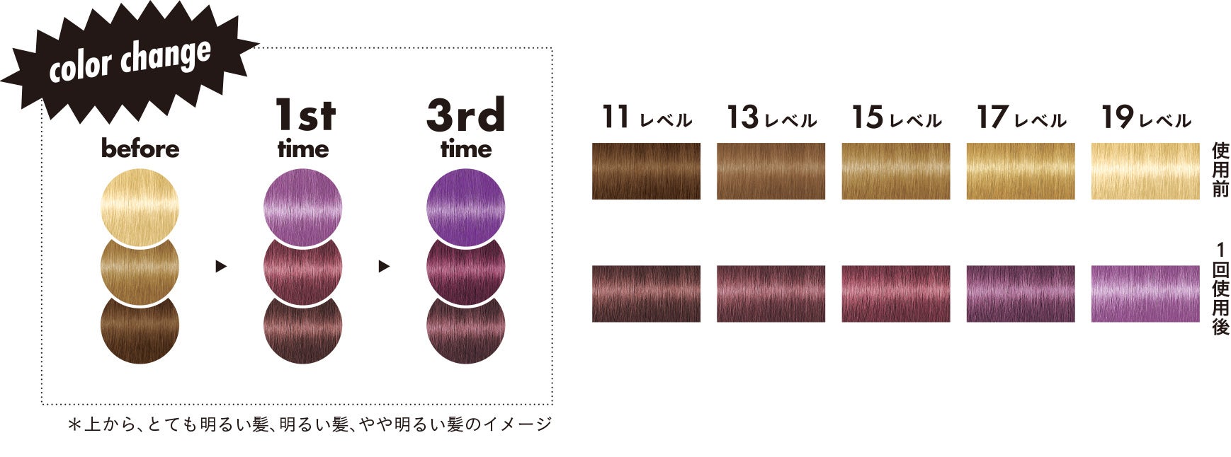 毛髪を保護・強化する「ボンディング・テクノロジー」搭載で、気になるダメージをケアしながら、中~高明度の明るい髪色に高発色の色素が定着してキレイなパープルカラーを長く楽しめます。