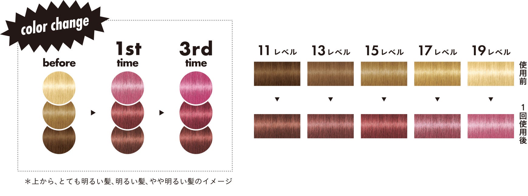 毛髪を保護・強化する「ボンディング・テクノロジー」搭載で、気になるダメージをケアしながら、中~高明度の明るい髪色に高発色の色素が定着してキレイなピンクカラーを長く楽しめます。