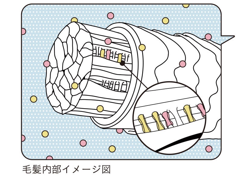 ジカルボン酸(*1)が浸透して髪の中の繊維(フィブリル間)に定着するとともに、ボンディング成分(*2)が髪の微細な隙間に入り込み、ブリーチやカラー後の髪を保護・強化します。