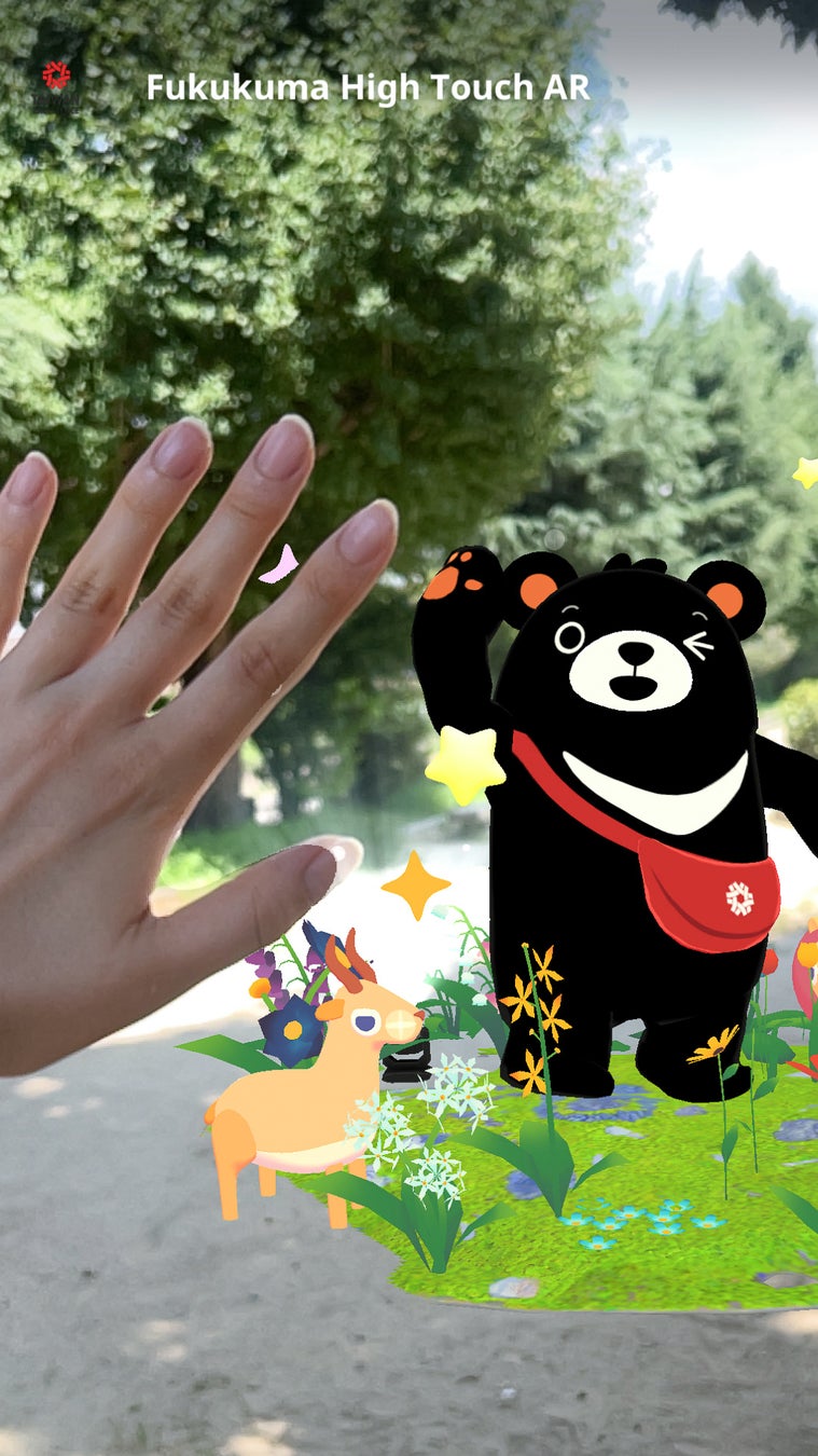 ◼福熊とARでハイタッチ!SNSにシェアして“応援の輪”を広げよう