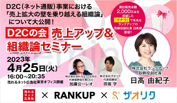 ランクアップ×売れるネット広告社×ザオリク登壇!『D2Cの会』売上アップ&組織論セミナー