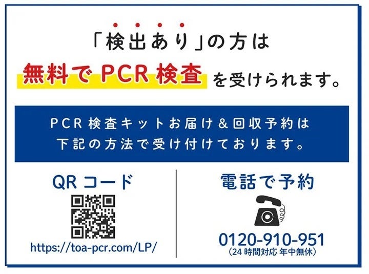 ・本検査キットで抗原検出ありの結果が出た場合、無料でPCR検査を受けることが可能です。