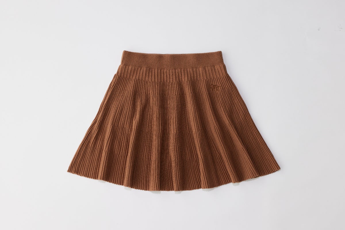 凹凸感のあるタック編みが表情をつくるフレアスカート。揺れ感のあるシルエットで、女性らしい華やかさを演出します。