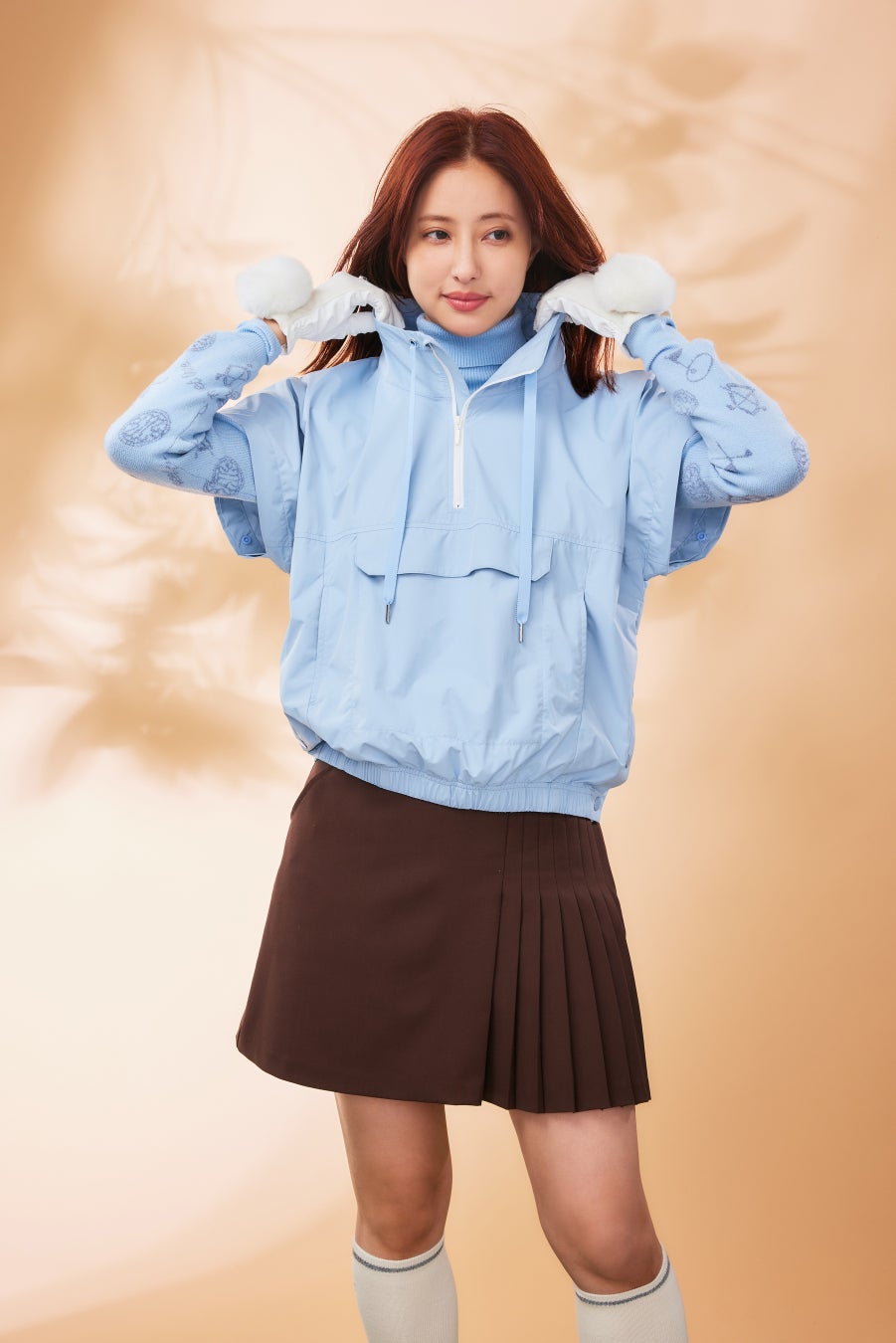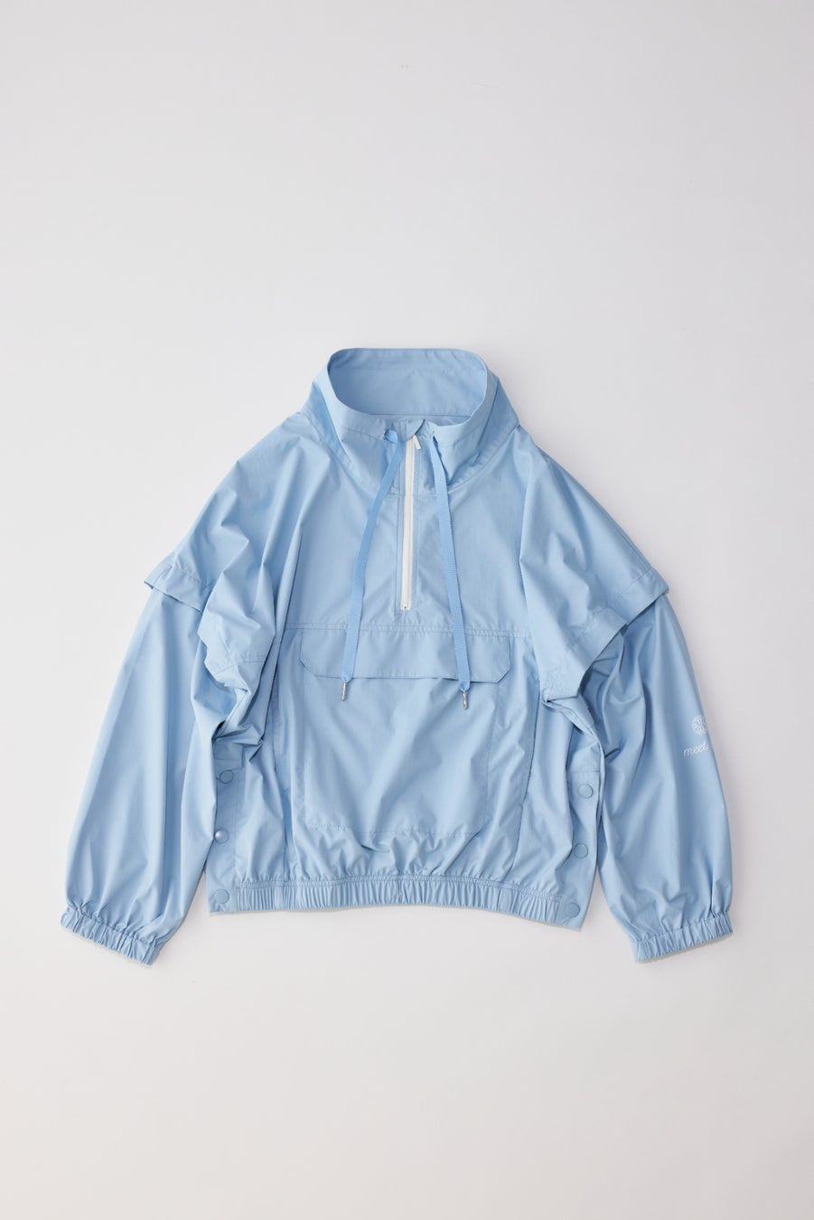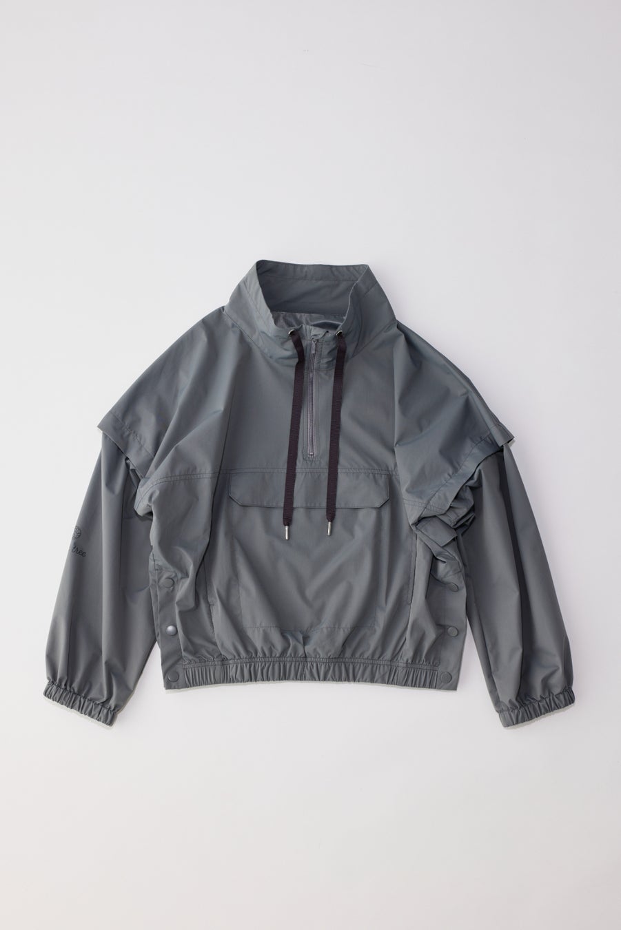 撥水性のあるナイロン素材を使用したブルゾン。袖を取り外して半袖としても着用できるデタッチャブル仕様で、季節やスタイルに合わせてアレンジが可能です。前身頃の中心・両脇・背中に配した大容量ポケットは、ラウンド時の収納力も抜群。