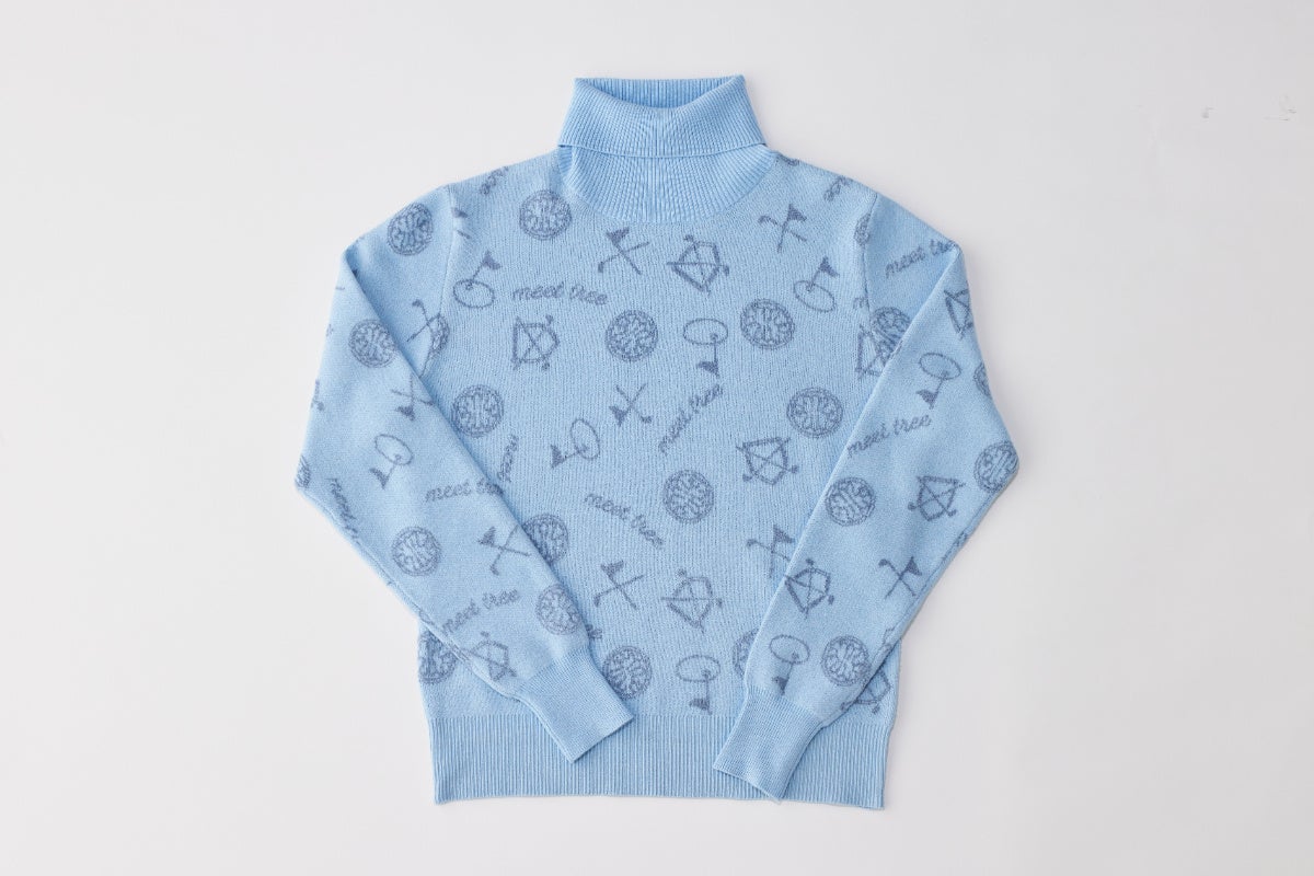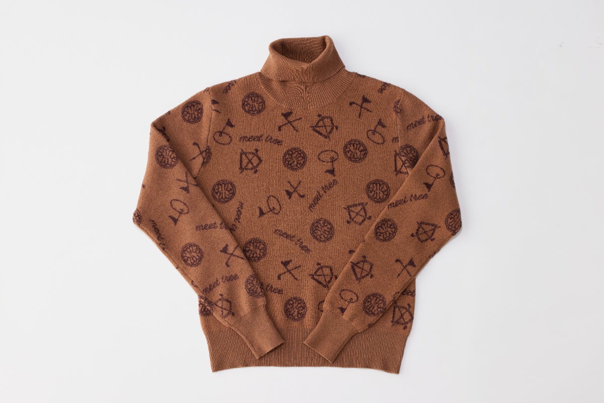 なめらかな肌触りが魅力のタートルネックニット。ブランドロゴをモチーフにしたジャカード柄が、シンプルな中に上品なアクセントを添えます。