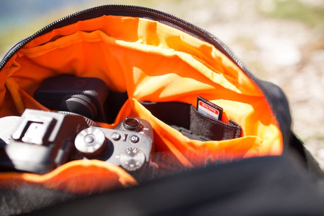 カメラやガジェットに最適な収納設計と厳選された防水高耐久生地が魅力。