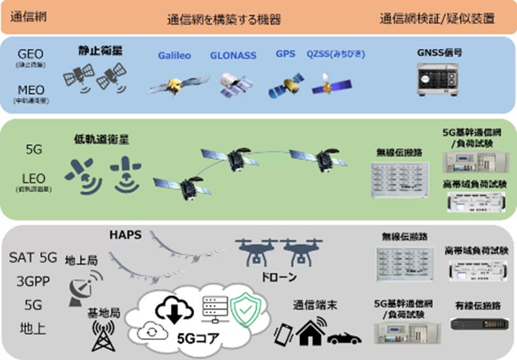 Spirent Communications社、ADVA社が提供するNTN(非地上系ネットワーク)のネットワーク検証/疑似装置群は、LEO(低軌道衛星)をはじめとするNTNの検証環境を提供し、宇宙空間、成層圏基盤技術で用いられる通信機器の実証実験を可能とします。