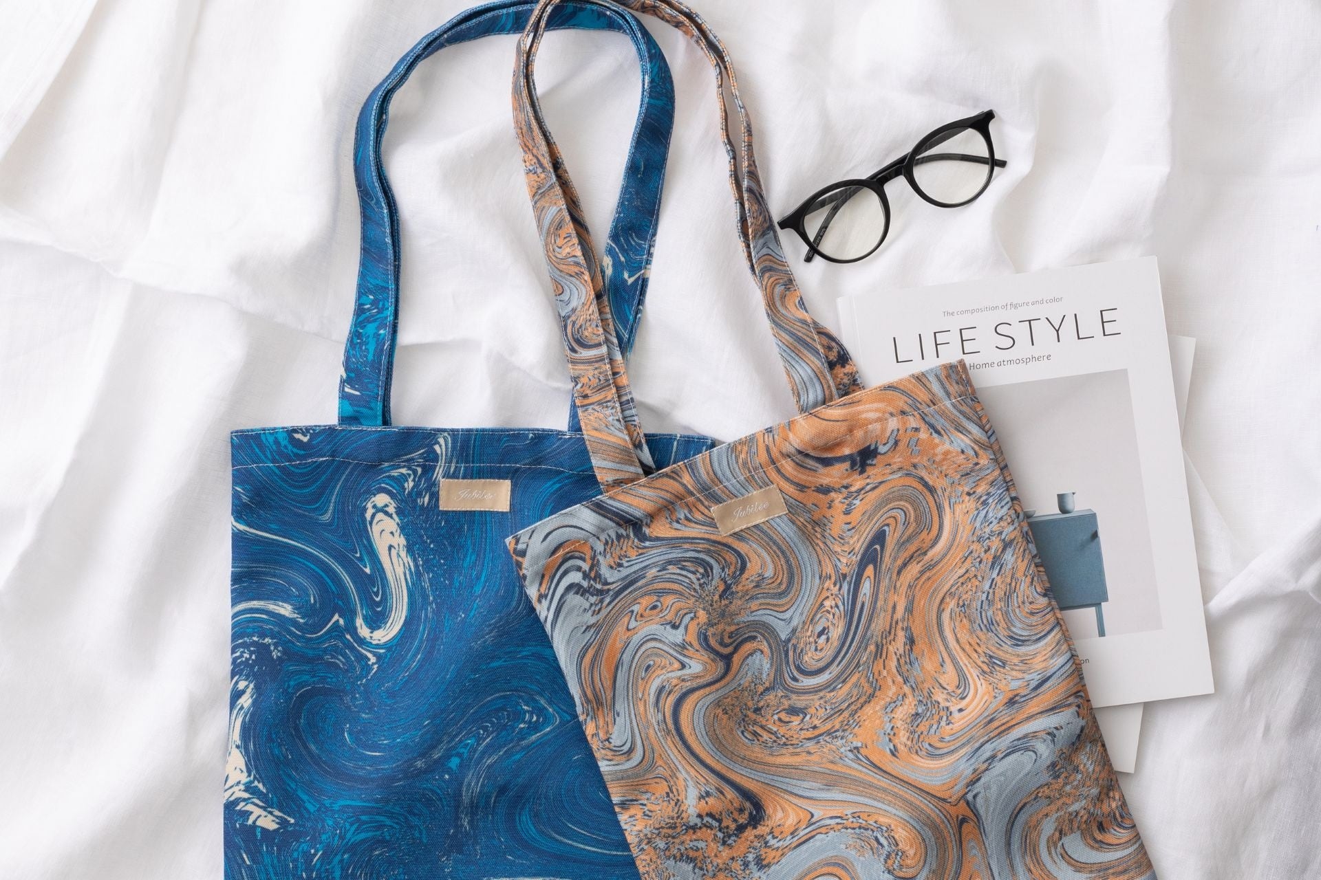 マーブル模様が美しいコットンキャンバストートバッグが新登場。