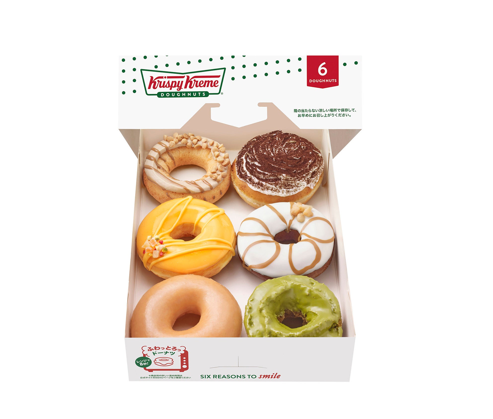 | 『ワールド ハーフ ダズン(6個)』 【販売期間】2022年3月2日(水)~4月下旬予定 【販売価格】1,490円(イートイン1,518円) 海外旅行を楽しむように、世界のおいしさをドーナツでお楽しみいただける6個入り。 イタリアのティラミス、ハワイのマカダミアチョコ、ブラジルのパッションフルーツ、 カナダのメープル、日本の抹茶、世界中で人気のオリジナル・グレーズド®。 誰かと一緒に食べると、一緒に世界を旅する気分になれる楽しいボックス。 |