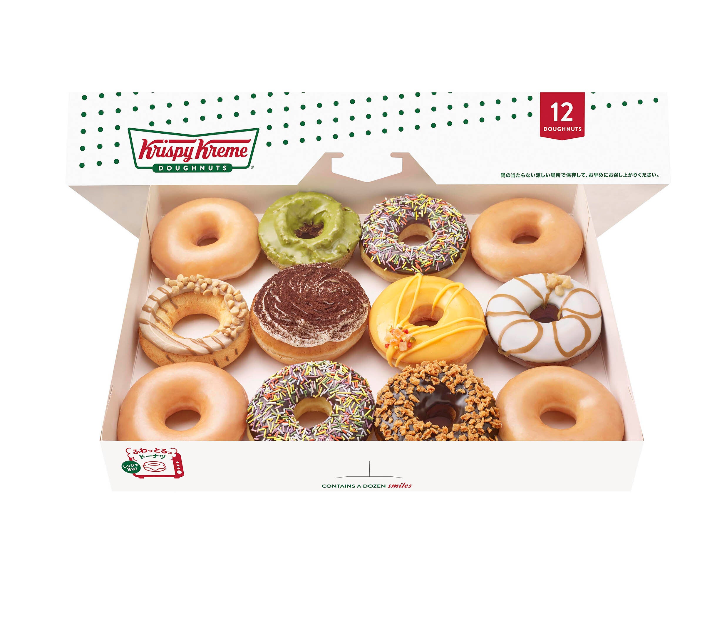 | 『ワールド ダズン(12個)』 【販売期間】2022年 3月2日(水)~4月下旬予定 【販売価格】2,376円(イートイン2,420円) イタリアのティラミス、ハワイのマカダミアチョコ、ブラジルのパッションフルーツ、 カナダのメープル、日本の抹茶、それぞれの国の人気デザートがドーナツになって、 世界旅行を楽しめるダズンボックス。 定番人気のオリジナル・グレーズド®、チョコ クランチ、チョコ スプリンクルの12個入り。 食べながら、旅の計画を立てたくなりそうです。 |