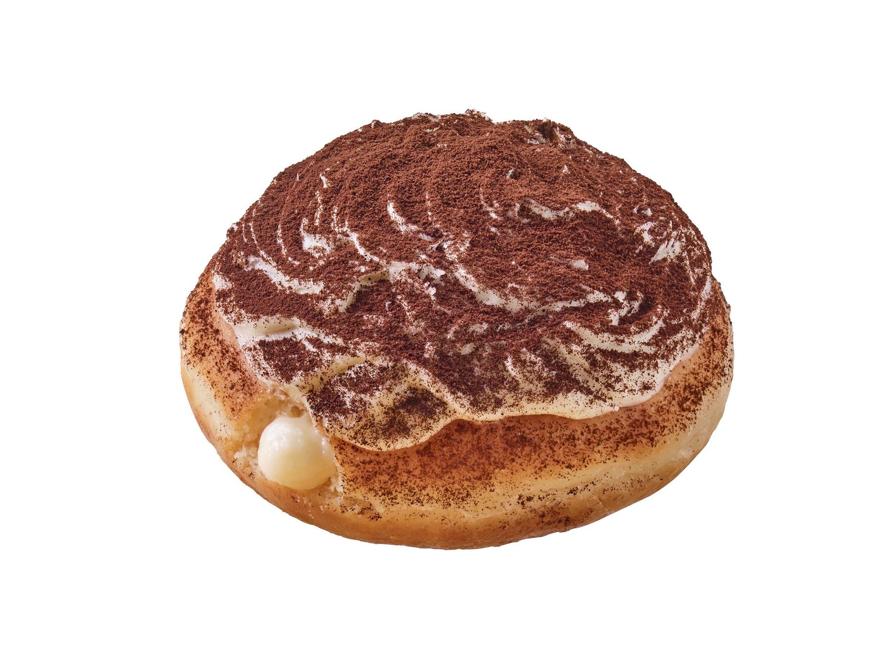 『ティラミス イタリア』は、イタリア発祥のスイーツ「ティラミス」をイメージしたドーナツです。マスカルポーネクリームを詰めた生地に、ホワイトチョコクリームをデコレーション。仕上げにココアとエスプレッソのミックスパウダーをふりかけました。