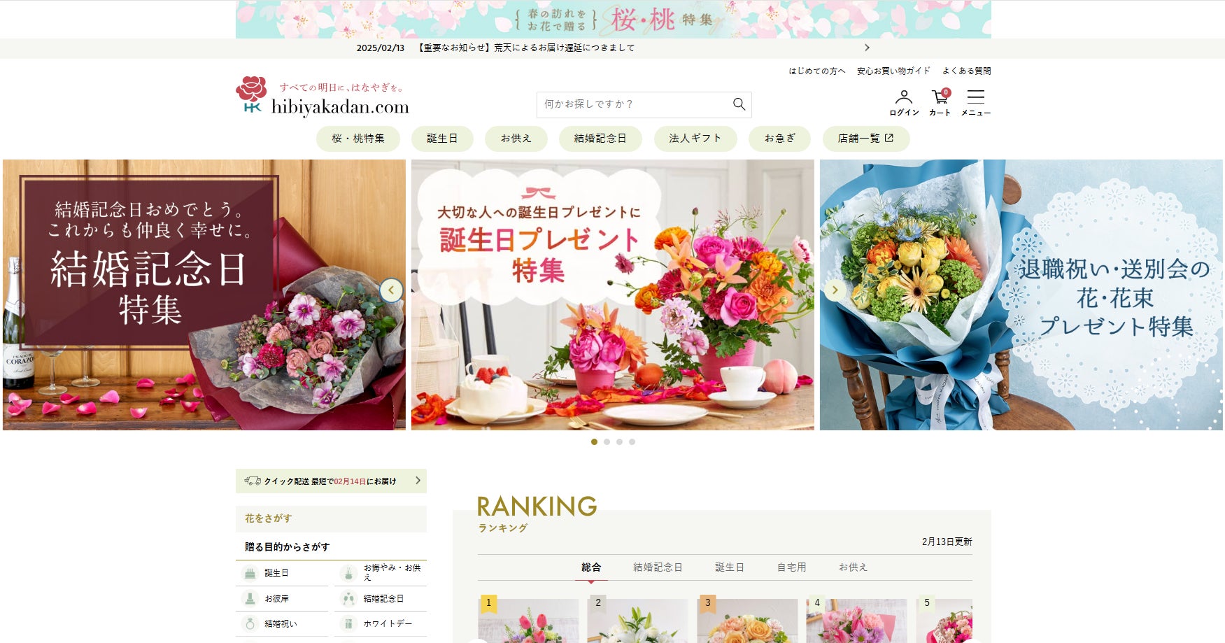 株式会社日比谷花壇(本社:東京都港区、代表取締役社長:宮島浩彰)は、自社オンラインショップ『hibiyakadan.com(ヒビヤカダンドットコム)』を「花やみどりにまつわる総合ギフトサイト」をコンセプトに2025年2月13日(木)にリニューアルオープンしました。スマホユーザビリティの向上を目指したデザインの刷新と商品検索機能の充実を図り、よりオンライン上で心地良くスムーズなお買い物をしていただける場を提供します。