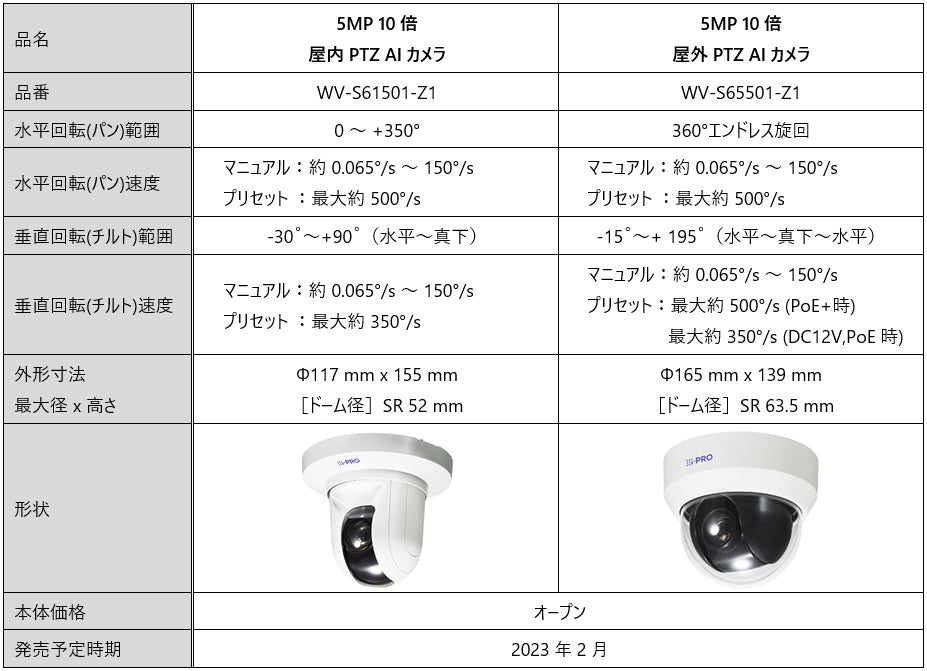 AIプロセッサー搭載のPTZカメラに5MP対応の高解像度モデル2機種を追加